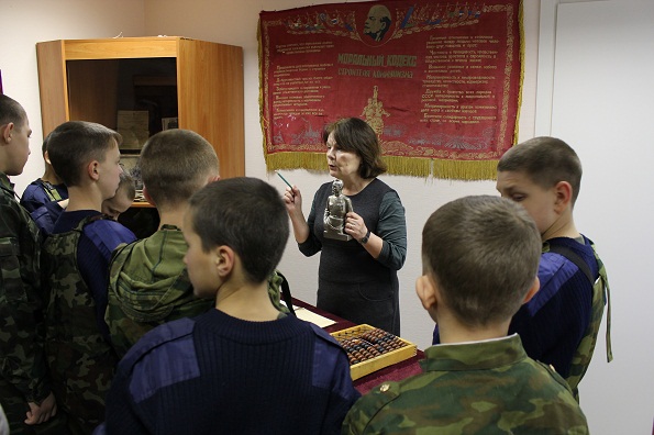В рамках мероприятия «Полиция для меня» ветераны МВД РФ встретились со школьниками. Валентина Быкова – секретарь совета ветеранов общественной организации ветеранов УМВД России по г.Сургуту провела экскурсию по музею. Ребята с интересом рассматривали представленные экспонаты и задавали вопросы. Такое мероприятие для воспитанников специализированной школы закрытого типа организовано впервые.