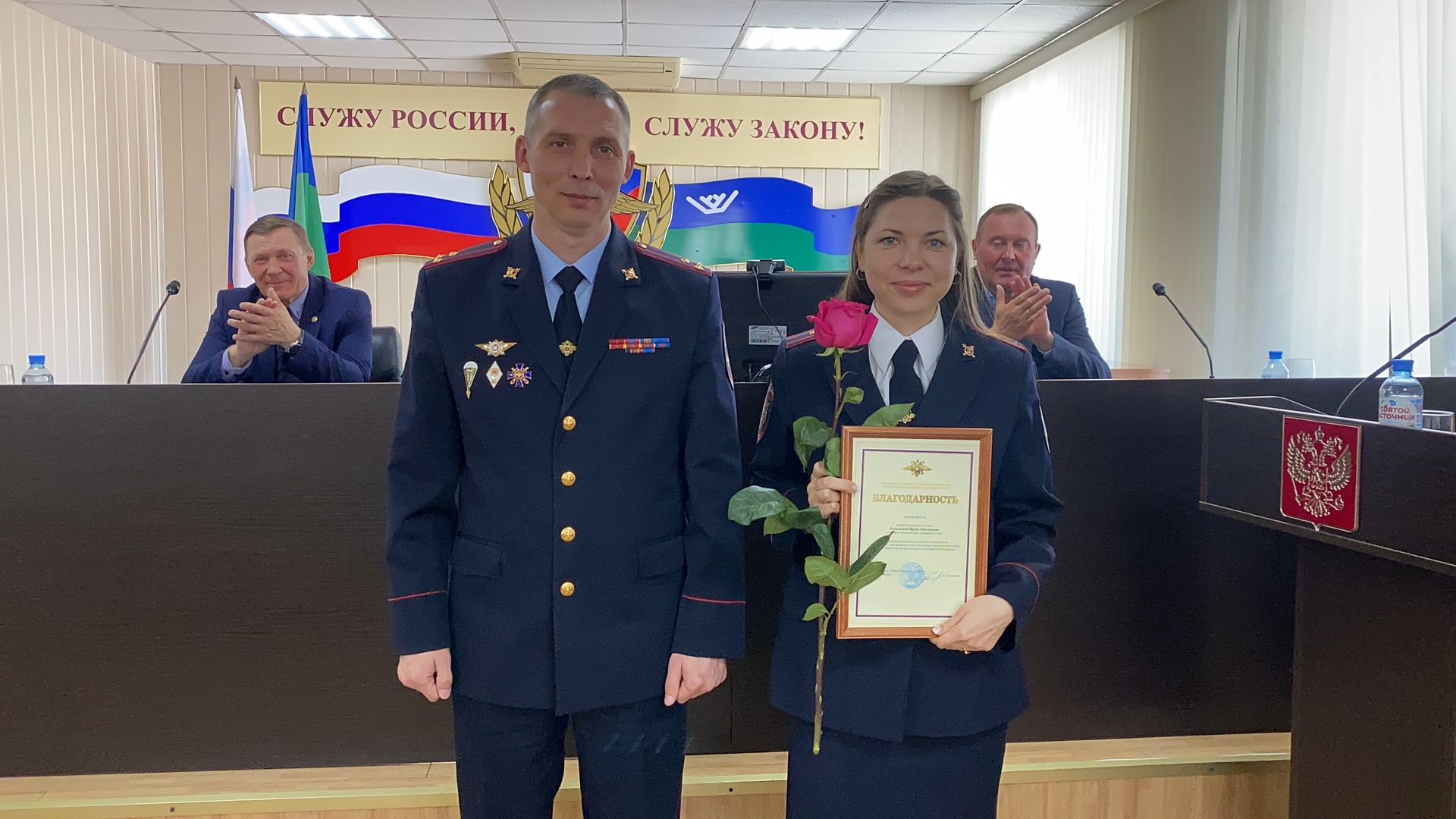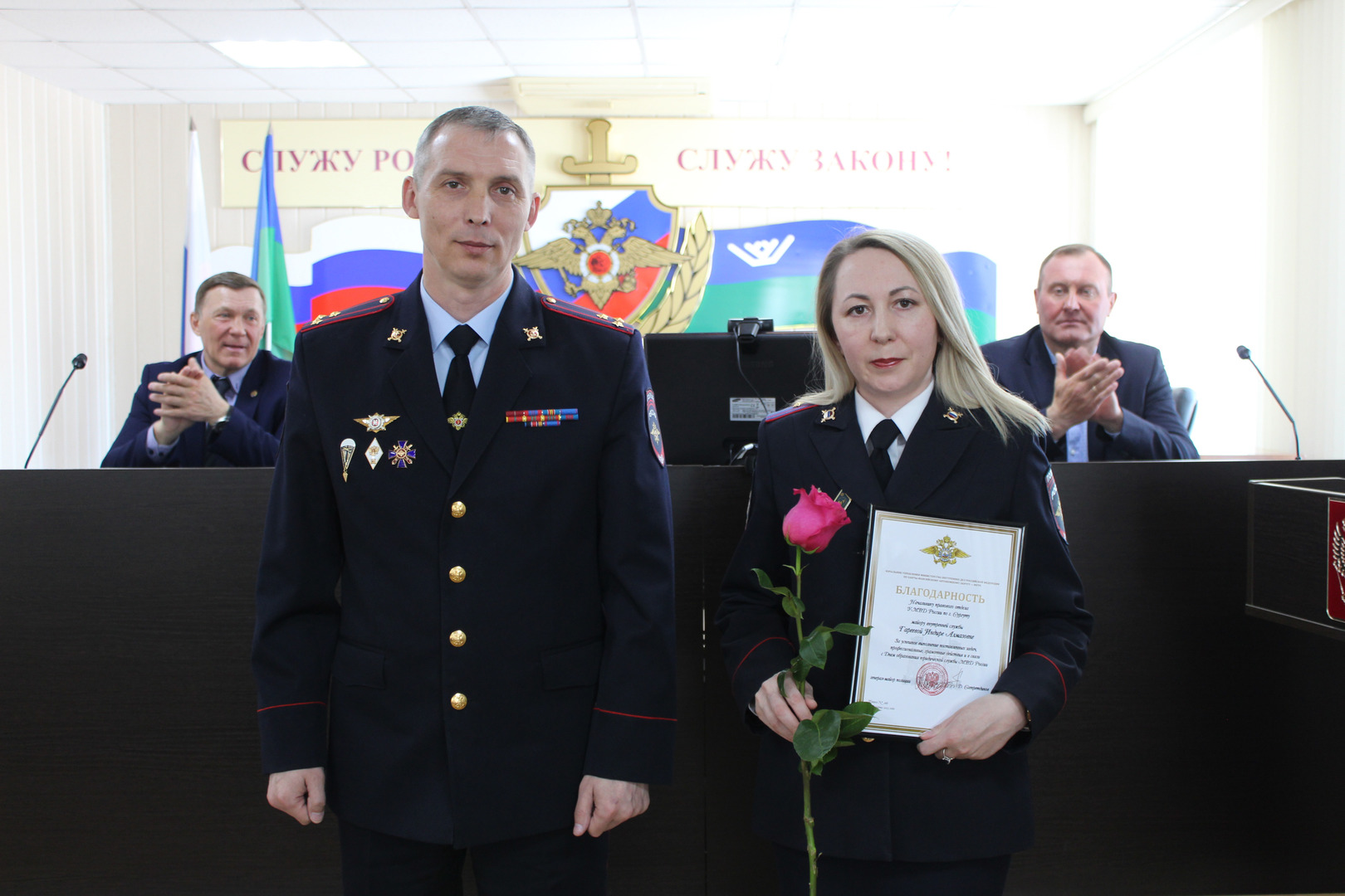 Благодарность начальника УМВД России по Ханты-Мансийскому автономному округу – Югре вручена начальнику правового отдела УМВД России по г. Сургуту майору внутренней службы Индире Гареевой.