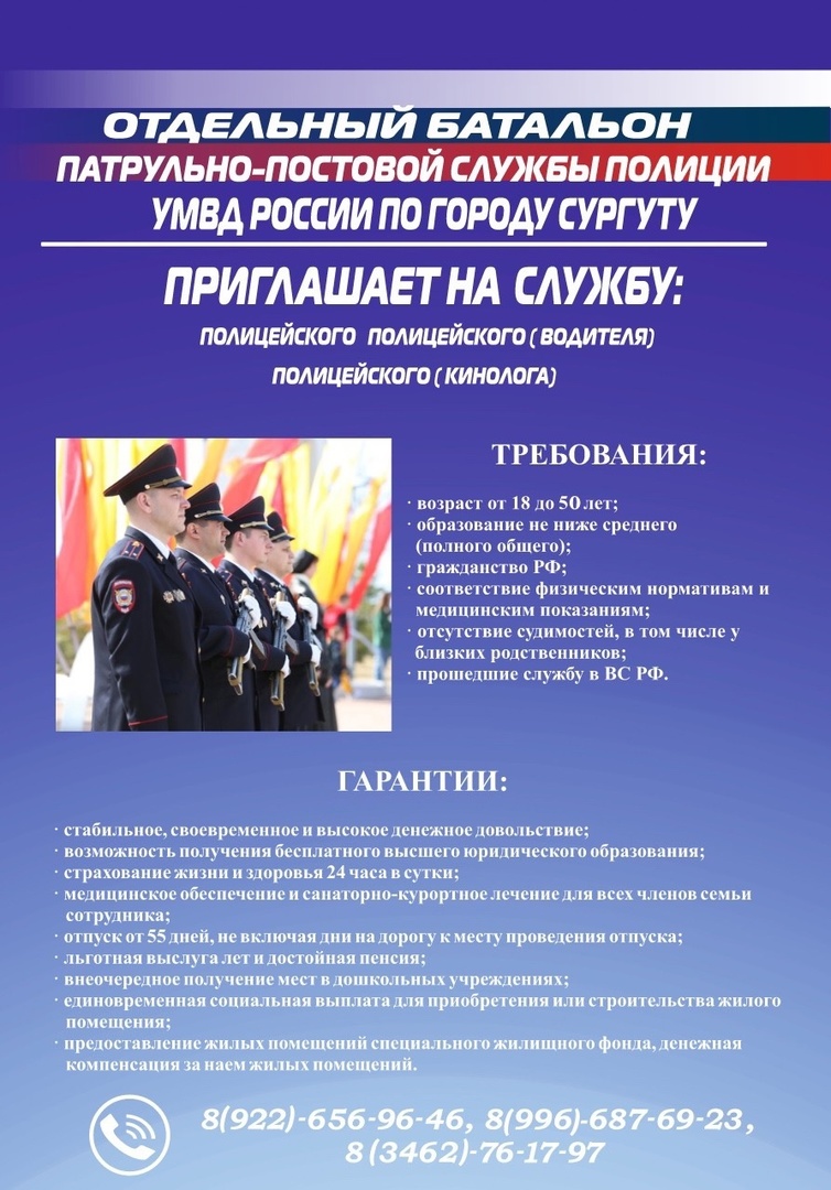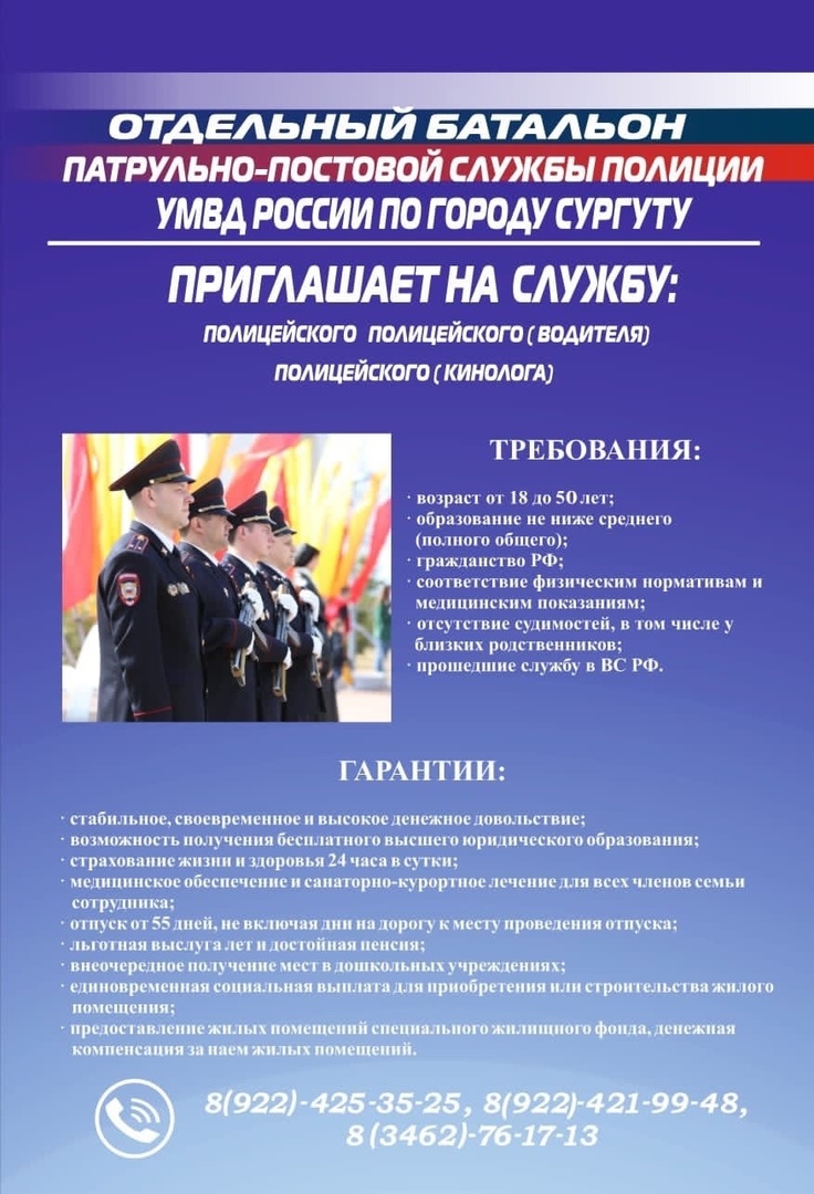 Отдельный батальон патрульно-постовой службы полиции УМВД России по городу Сургуту приглашает на службу