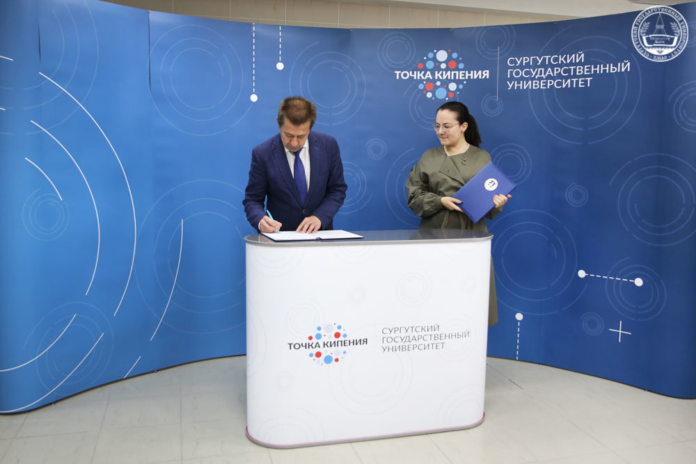 Завершилась торжественная часть подписанием двустороннего соглашения о сотрудничестве СурГУ и платформы Национальной технологической инициативы. Для гостей и участников церемонии также провели экскурсию по лекториуму, коворкингу и залу для групповых работ, где будут проходить мероприятия «Точки кипения».