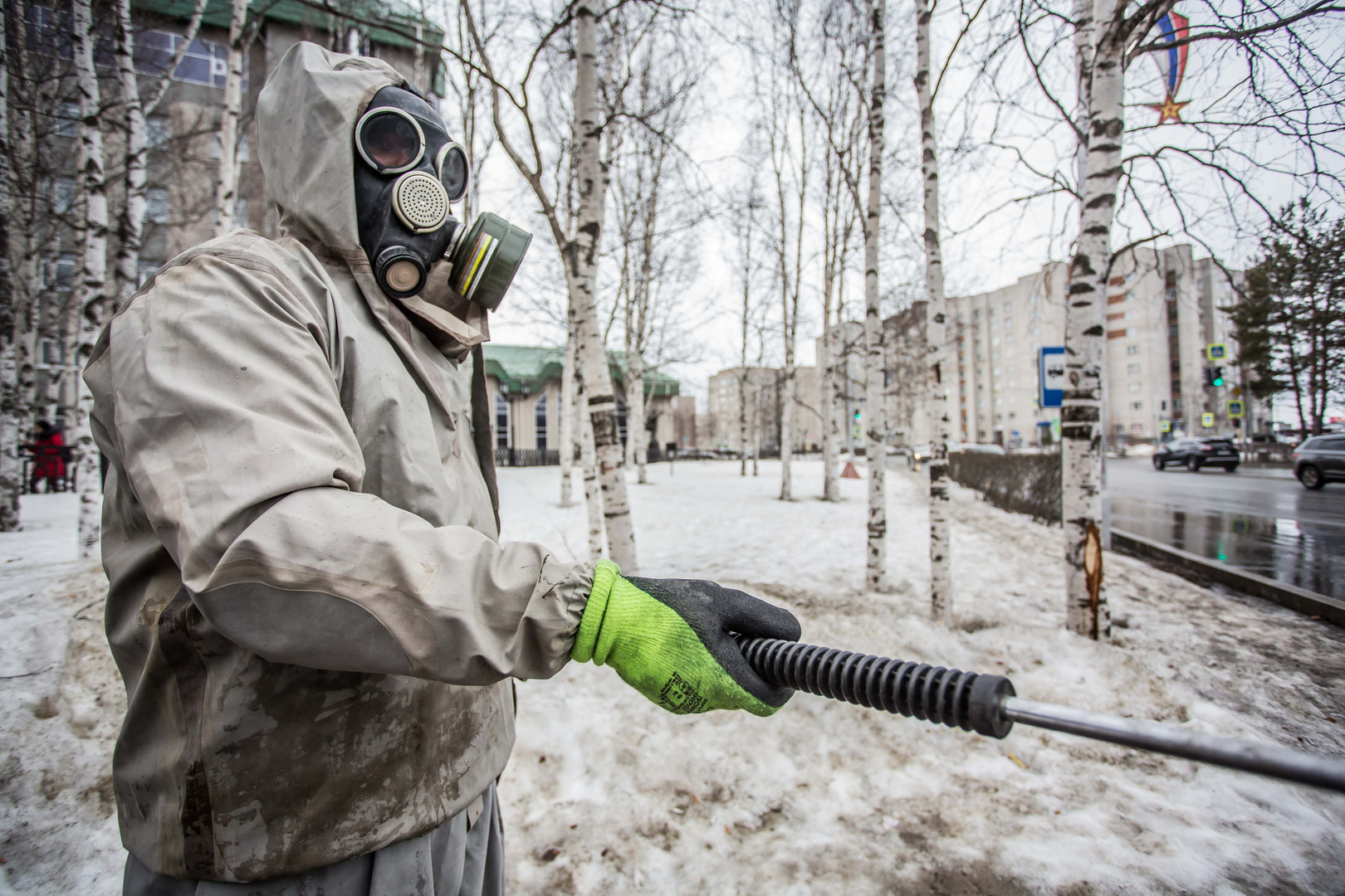 Поскольку часть жителей не соблюдает режим самоизоляции перед тем, как приступить к обработке, в парках и скверах проводится осмотр территории. Далее работники переходят к дезинфекции. Для обеззараживания объектов используют гипохлорит кальция. Этот препарат один из наиболее надежных дезинфицирующих средств и безопасен для человека. Весь персонал, который выполняет дезинфекцию, оснащен спецодеждой, влагонепроницаемыми перчатками, респираторами и герметичными очками, предназначенными для работы с дезинфицирующими средствами.