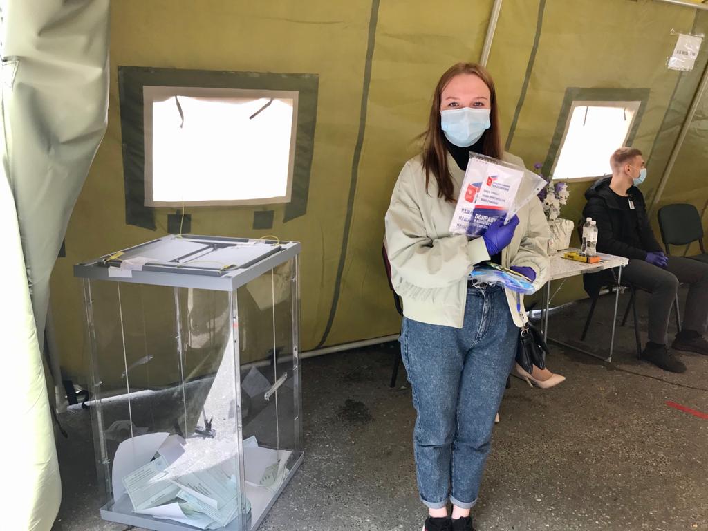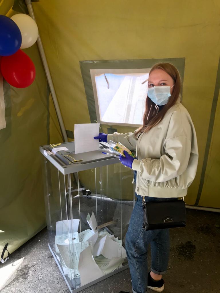 Выпускница лицея № 3 Юлия Пинчук пришла на избирательный участок в первый раз, заранее изучив поправки в Конституцию, и отдала свой голос под аплодисменты членов УИК.