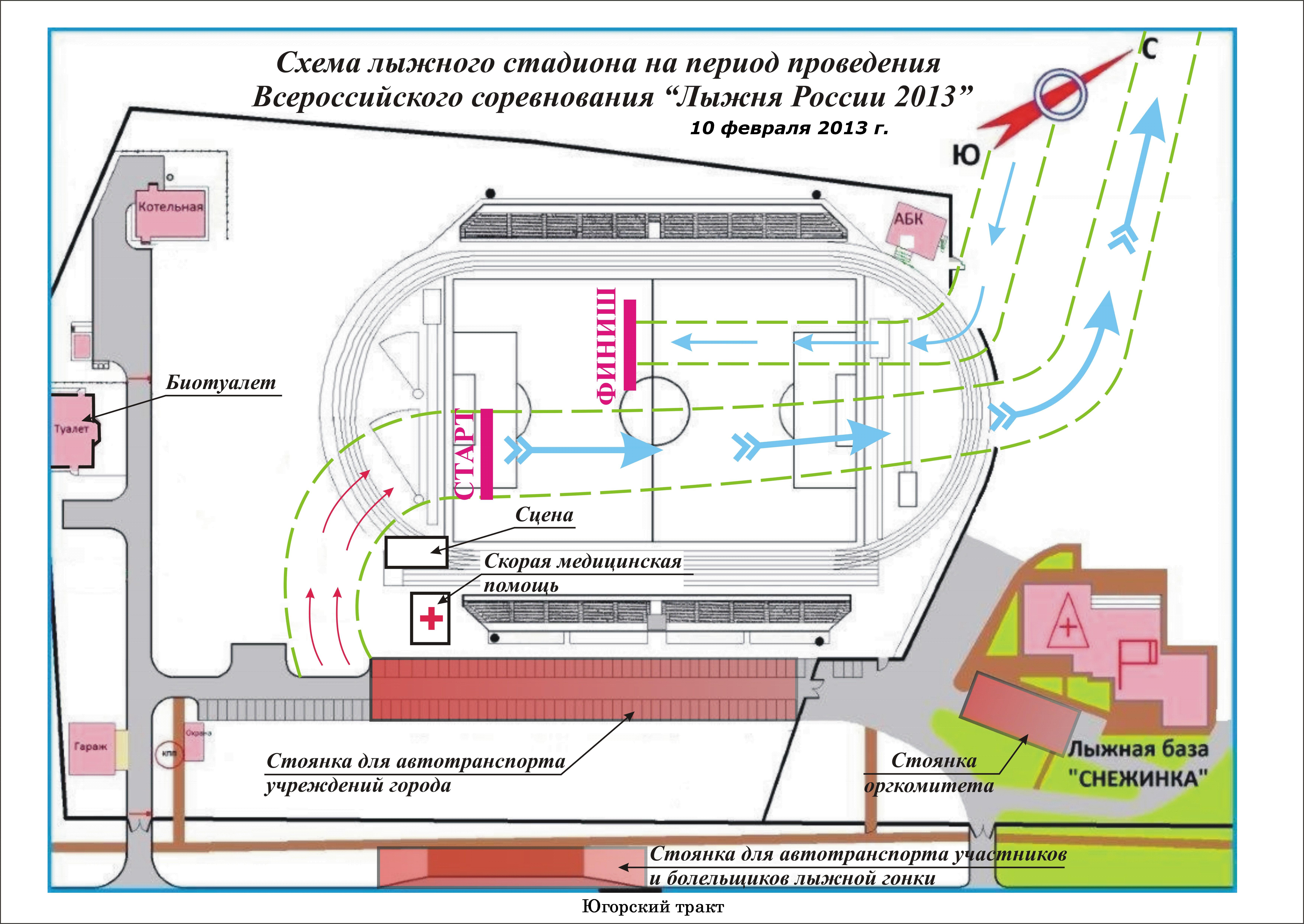 Схема лыжного стадиона на период проведения Всероссийского соревнования "Лыжня России 2013"