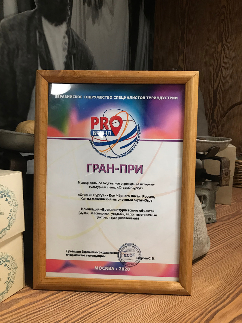Проект историко-культурного центра «Старый Сургут» «Дом Чёрного Лиса» получил ГРАН-ПРИ международного маркетингового конкурса PROБРЕНД-2020 в номинации «Брендинг туристского объекта». Современный интерактивный проект, в первую очередь, рассчитан на детско-юношескую аудиторию и раскрывает многовековую историю Сургута.