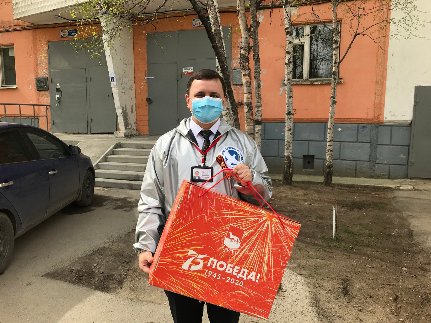 В преддверии 9 мая подарки от главы города получат около 950 ветеранов, 9 из которых – участники боевых действий. Волонтеры поздравляют ветеранов, строго соблюдая все меры безопасности – используют медицинские маски, перчатки, сохраняют социальную дистанцию при общении с пожилыми людьми.