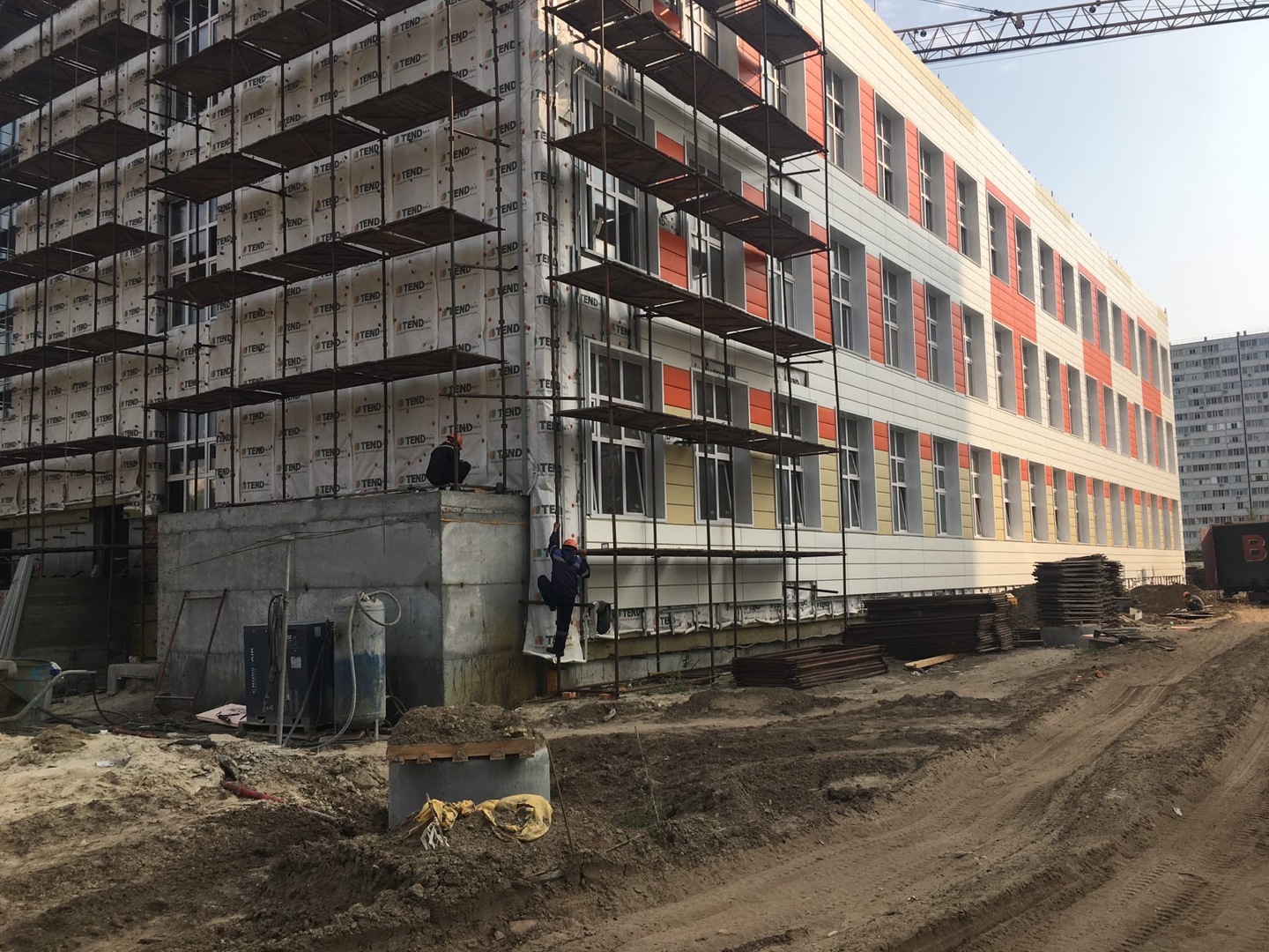Здание будущего образовательного учреждения уже почти готово. Современные технологии позволяют достраивать объект и одновременно вести отделочные работы в возведенном секторе.