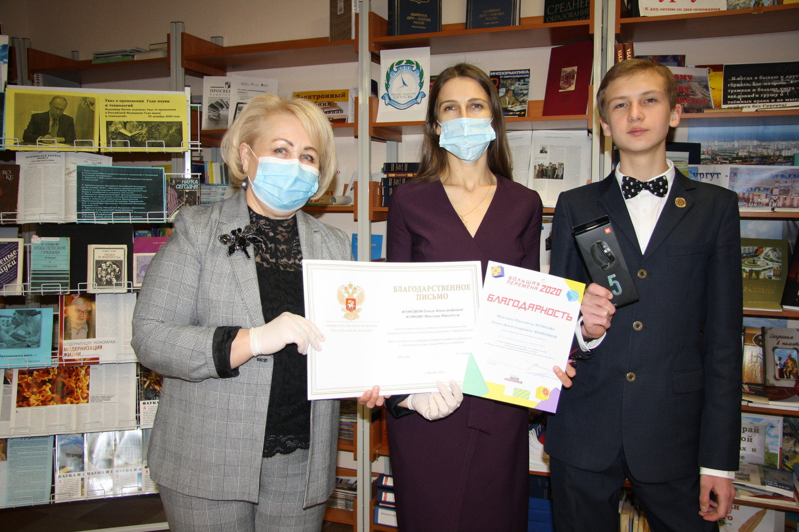 В Сургуте состоялось торжественное награждение финалистов всероссийского конкурса «Большая Перемена». Ими стали сразу трое сургутских школьников: Екатерина Калашникова, учащаяся 11 класса школы № 44, Егор Жуйков, ученик 10 класса гимназии «Лаборатория Салахова», и ученица 11 класса школы № 24 Елизавета Горло, которая признана победителем конкурса. Сегодня юных сургутян наградили фитнес-браслетами, а их родителей благодарственными письмами от Министерства просвещения РФ и благодарностями организаторов Всероссийского конкурса.