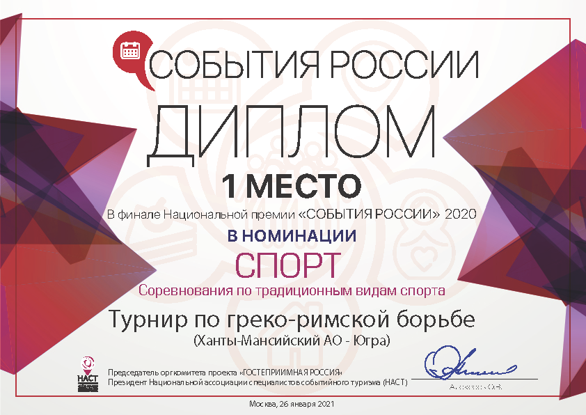 Сургутский проект «Турнир по греко-римской борьбе» признан лучшим в номинации «СПОРТ. Соревнования по традиционным видам спорта». Турнир проводится в городе с 2003 года и ежегодно собирает более трехсот участников со всей страны.