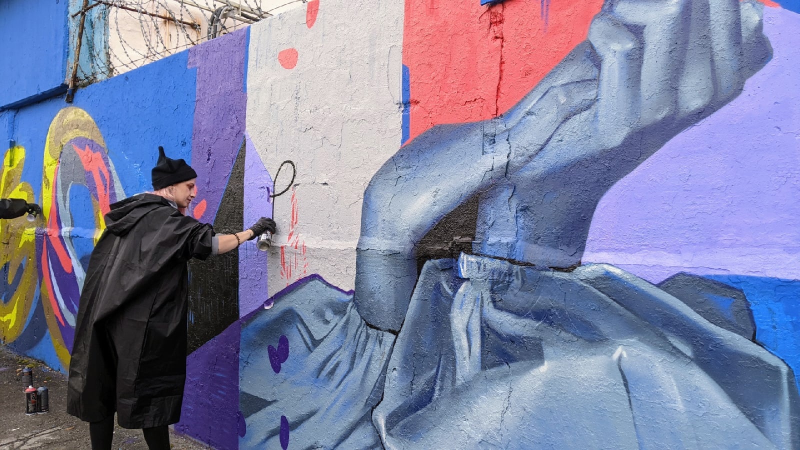 Команда молодых художников выполнила масштабное граффити, общей площадью 150 кв. метров, на стене на территории пешеходной зоны по улице Нефтяников до улицы Григория Кукуевицкого.