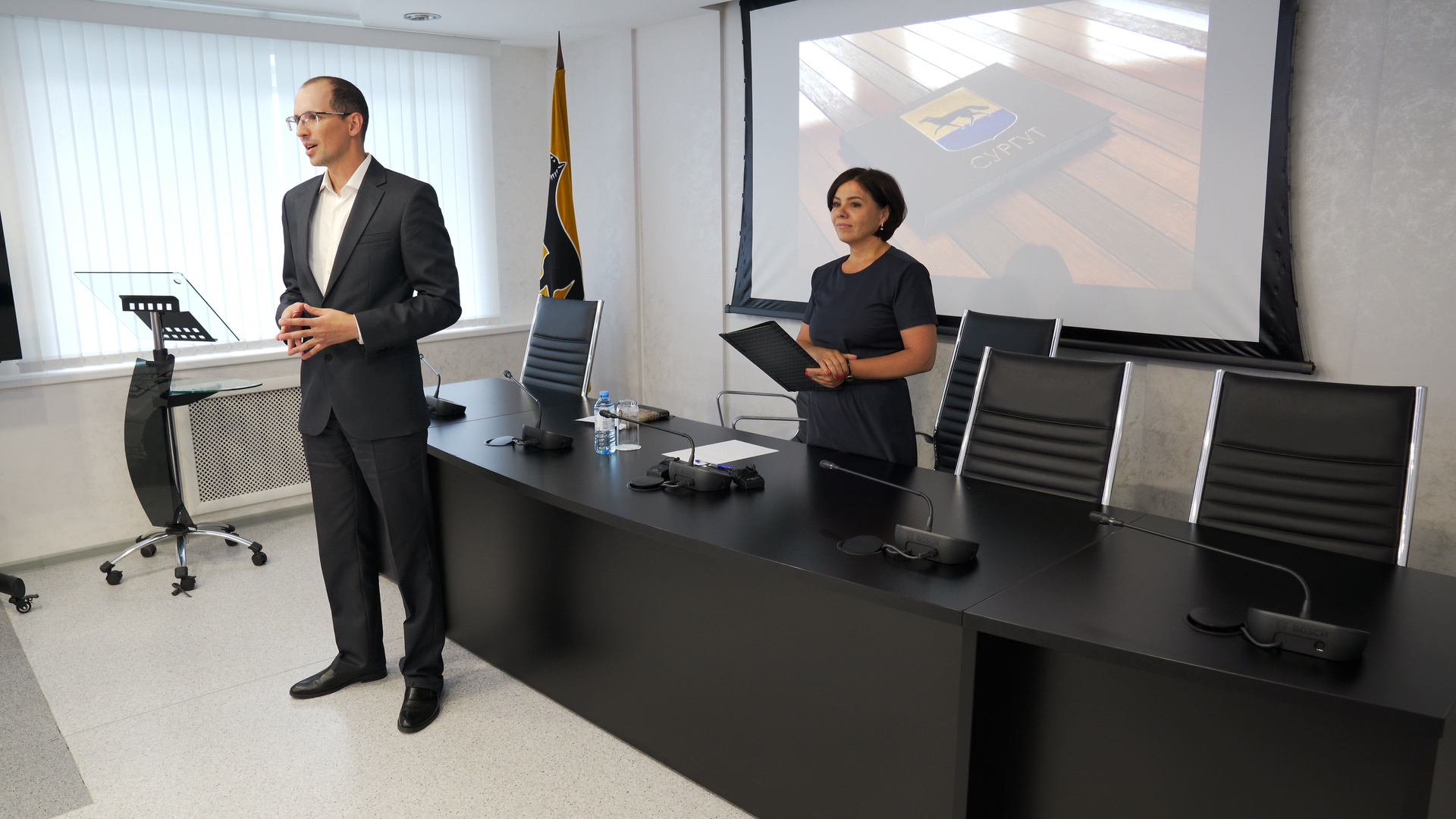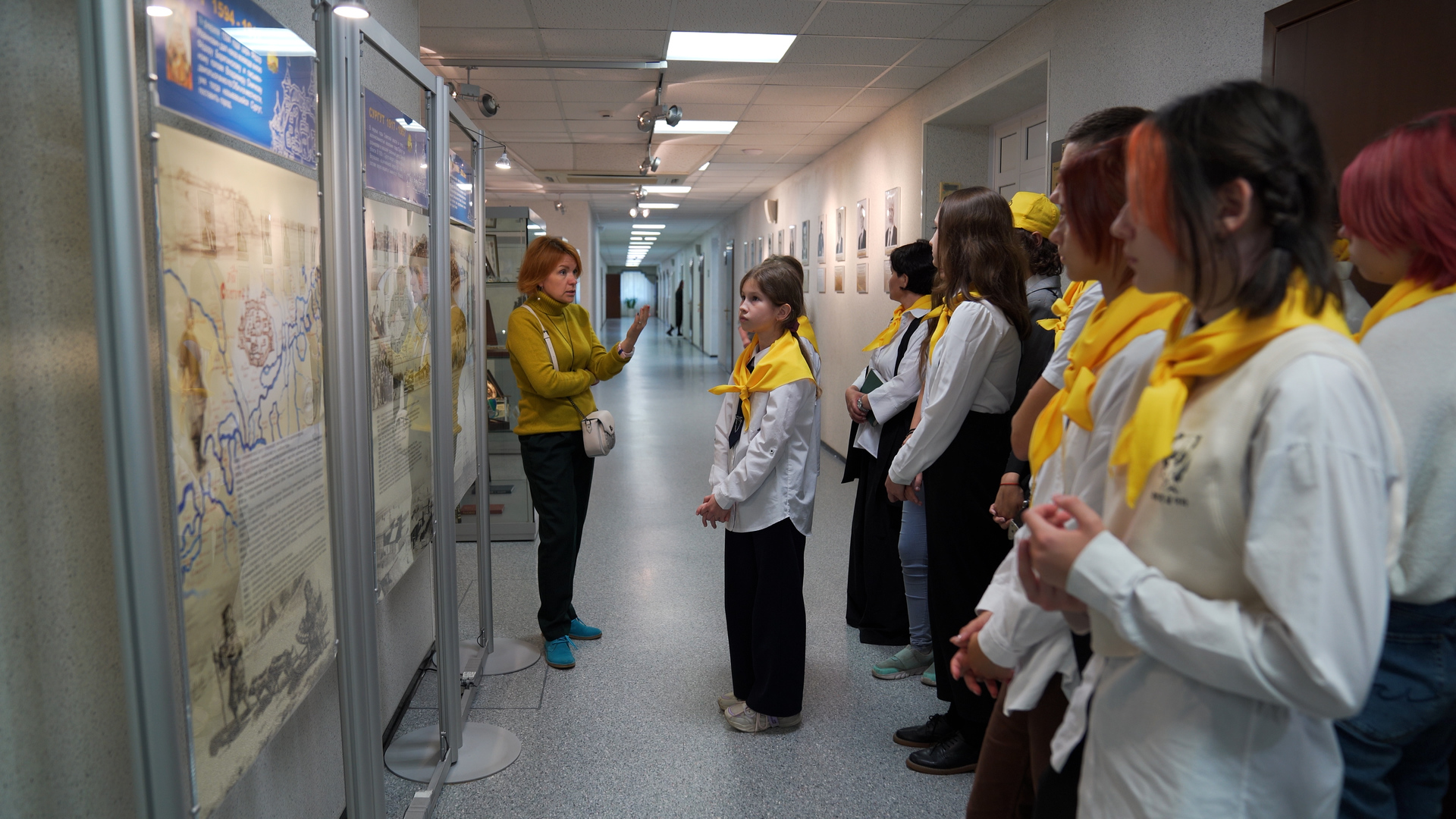 После встречи для участников организовали экскурсию по Администрации. Экскурсовод Сургутского краеведческого музея Елена Дьяченко продемонстрировала выставку об истории города Сургута и тех, кто стоял у истоков его развития.