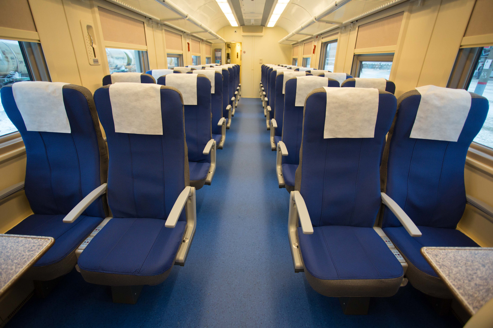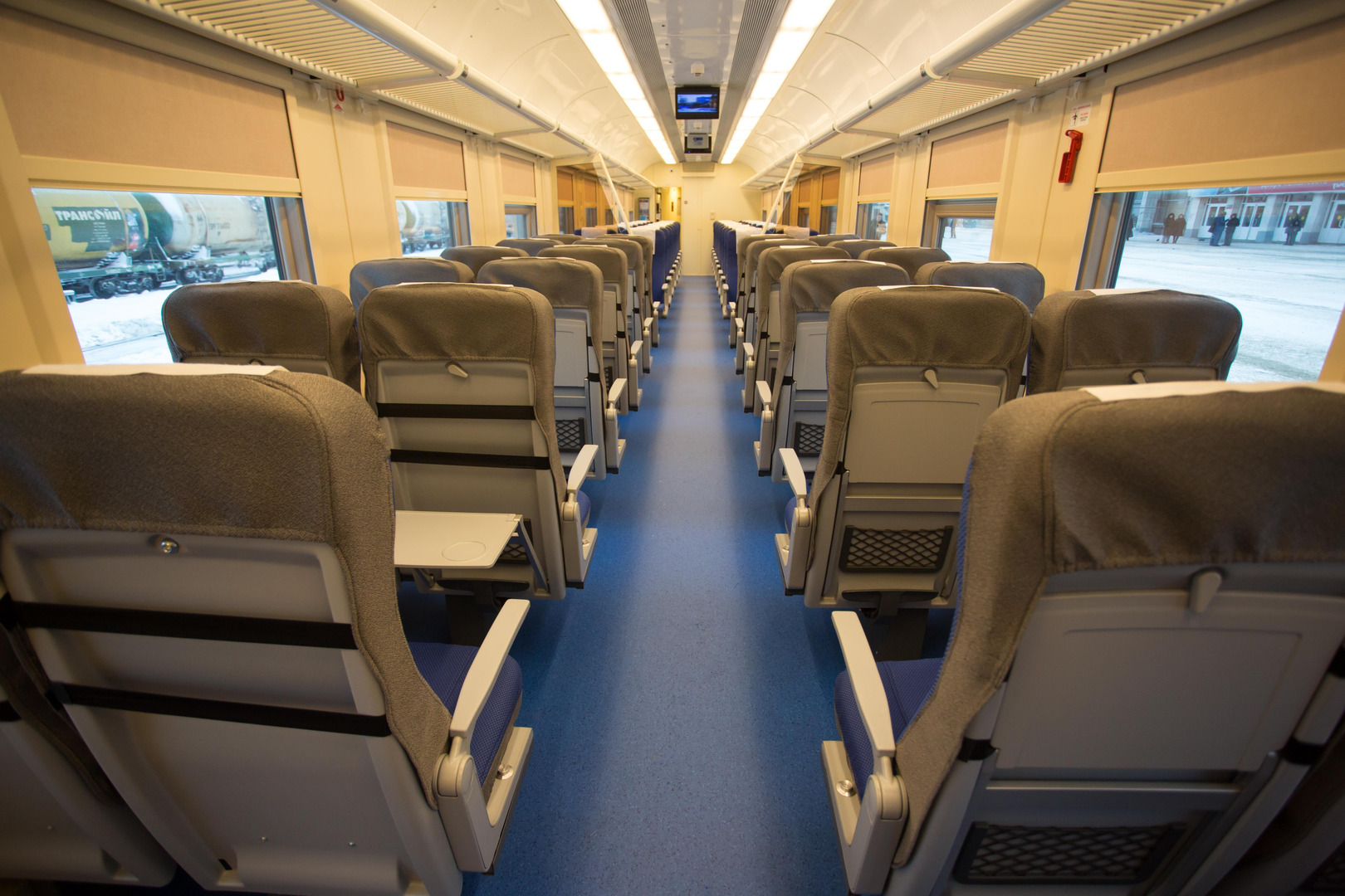 В двух вагонах стандартной планировки установлено по 60 эргономичных сидений с возможностью регулировки угла наклона спинки, с подлокотниками и откидными столиками. Третий вагон оборудован купе для маломобильных пассажиров и специализированным туалетным комплексом. Для посадки и высадки пассажиров-колясочников тамбур будет оснащен подъемным устройством. Вместимость этого вагона — 46 мест.