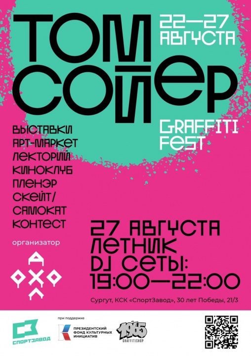В рамках фестиваля граффити «Том Сойер» на площадке «СпортЗавода» (ул. 30 лет Победы, 21/3) для посетителей подготовили граффити мастер-классы, киноклуб с культовыми фильмами про уличную культуру, креативные фотозоны и многое другое.