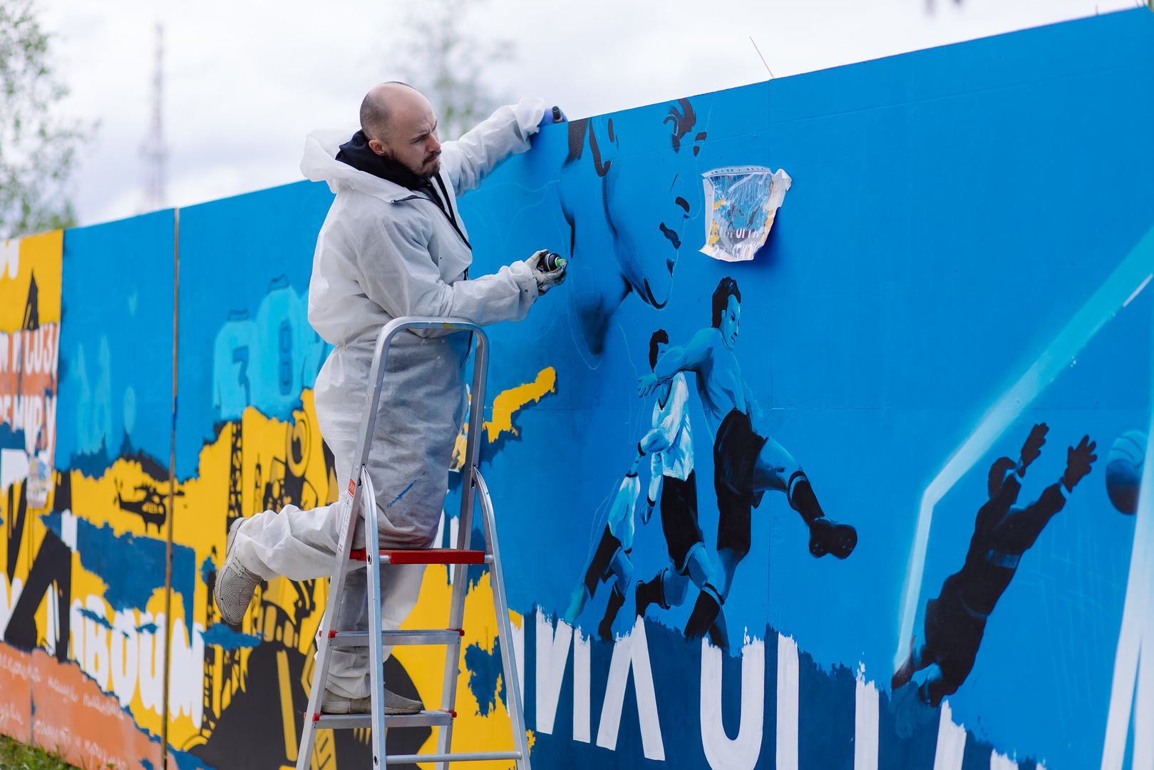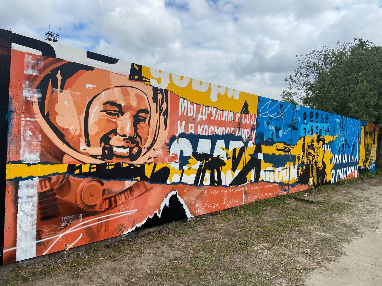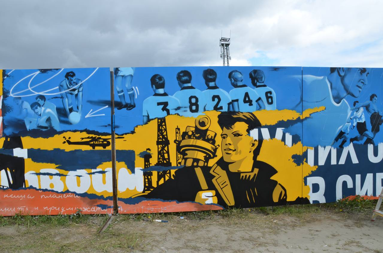 Молодые художники выполнили масштабное граффити на стене напротив мемориального комплекса геологов-первопроходцев «Дом Ф.К. Салманова».