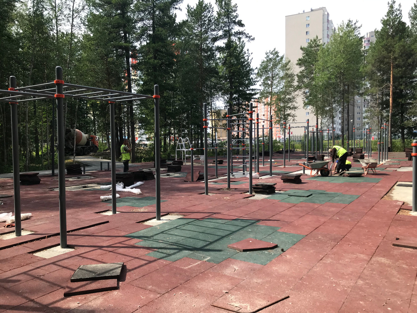 Выполнено уже 80 процентов запланированных работ. Завершено обустройство ливневой канализации. Парк расположен низко относительно близлежащих кварталов, там скапливалось много воды. По заверениям подрядчика, вопрос удалось решить за счет системы водоотведения. Дорожно-тропиночную сеть проложили в тех местах, где жители микрорайона ходили ранее. Установлено освещение, порядка 30 камер видеонаблюдения с высоким разрешением, большая спортивная площадка, скамейки, урны. Обустроены зона отдыха и центральная площадь с подсветкой. Осталось оборудовать детскую площадку.
