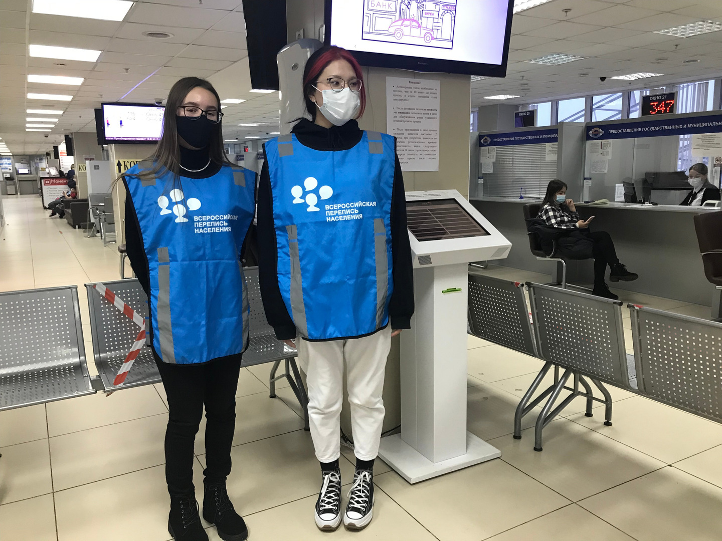 – Около 60 волонтеров помогают жителям Сургута пройти перепись в МФЦ города. По два добровольца в смену. Работают добровольцы обычно с понедельника по пятницу по четыре часа, с 11 до 15.00 и с 15.00 до 19.00. В основном, это студенты. Все ребята прошли обучение. Они информируют горожан о переписи, о том, как и где можно переписаться, направляют к компьютеру с доступом на портал Госуслуг или к переписчику, работающему на территории МФЦ. При необходимости провожают, – рассказывает старший специалист по работе с молодежью Молодежного ресурсного центра МБУ «Вариант» Ирина Кузьмина.