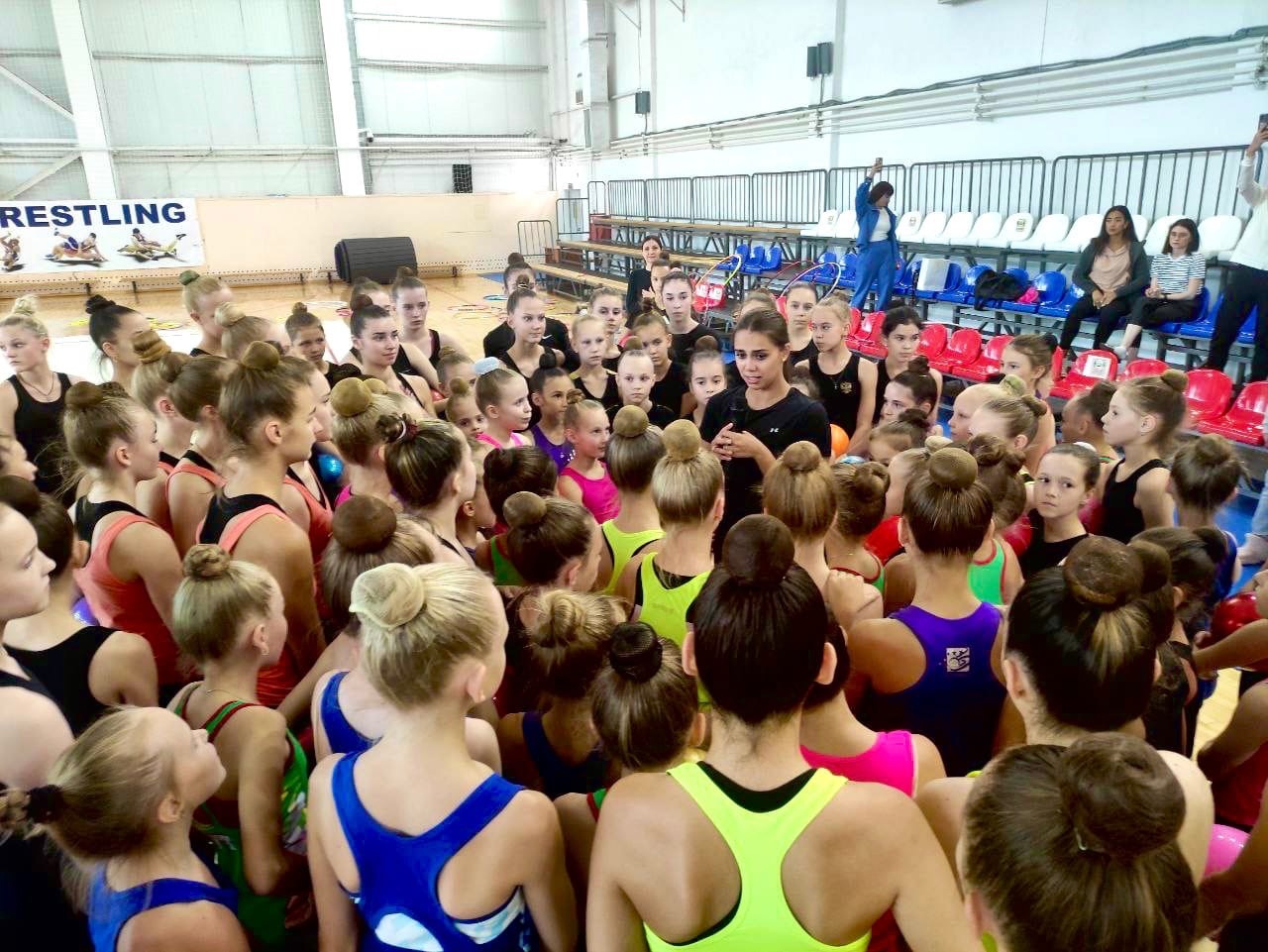 На мастер-класс от чемпионки Маргариты Мамун в Спортивной школе Олимпийского резерва №1 собрались 110 спортсменок. В ходе занятия она показала гимнасткам упражнения и приемы владения обручем и мячом, а также отработала с девочками теорию на площадке. После этого Маргарита ответила на вопросы юных атлетов, провела автограф- и фотосессию с гимнастками.