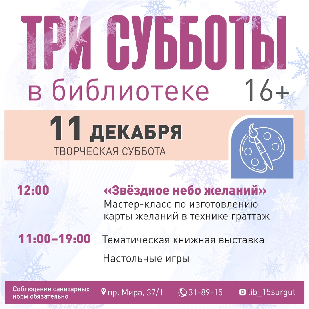 Спектакли, мастер-классы, выставки, игры, концерты организованы для жителей и гостей города в эти выходные. В ИКЦ «Старый Сургут» вновь ждут сургутян на детской площадке «Забава». С 12.30 до 13.15 и с 14.30 до 15.15 там будет проходить квест-игра для семейного отдыха «Тайны Черного Лиса».