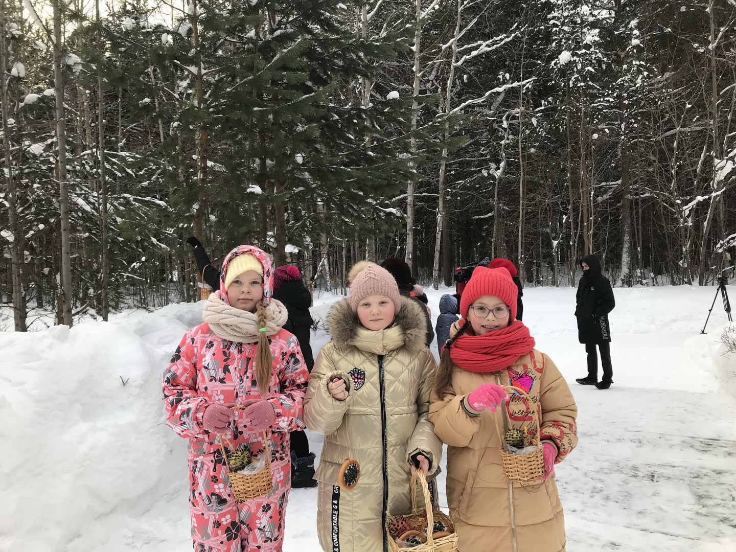 «Мы приготовили для птичек бублики с салом, прокрученным на мясорубке и без соли, так как соль – это яд для птиц. Туда добавили зерновую смесь, а сверху семечки. Еще сделали шишки с салом, зерносмеью и семечками. На подготовку одного угощения уходило не более 20 минут. Мы часто с родителями ходим кормить птиц в парке», – делится воспитанница эколого-биологического центра София Кобакова.