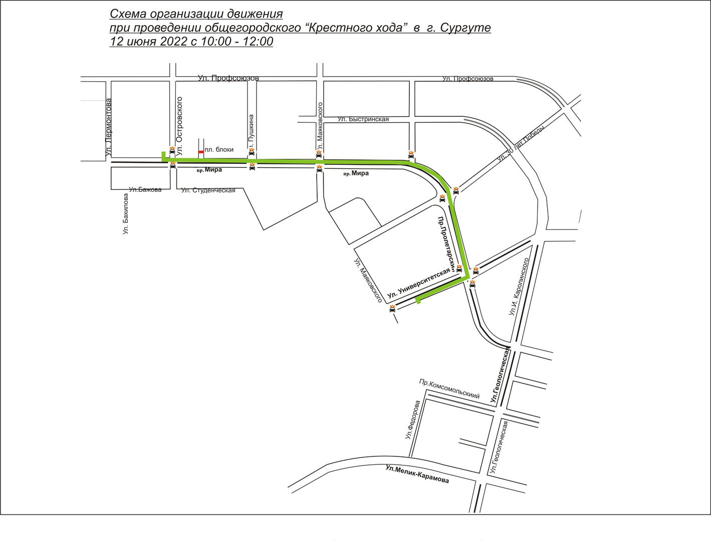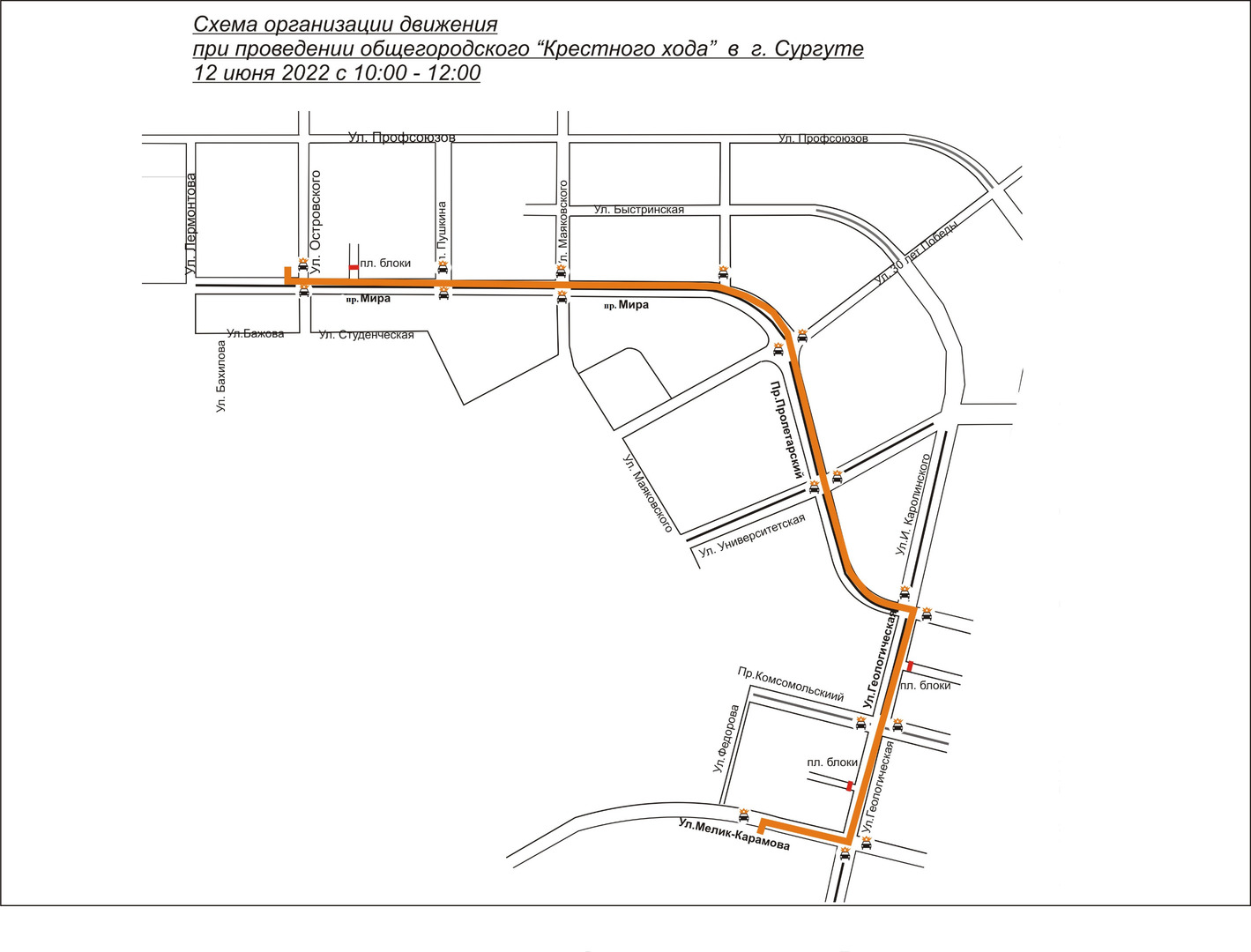 Администрация города Сургута информирует о частичном и временном перекрытии движения автотранспорта по улицам города 11 июня и 12 июня 2022 года для организации праздничных мероприятий по ниже указанным маршрутам: