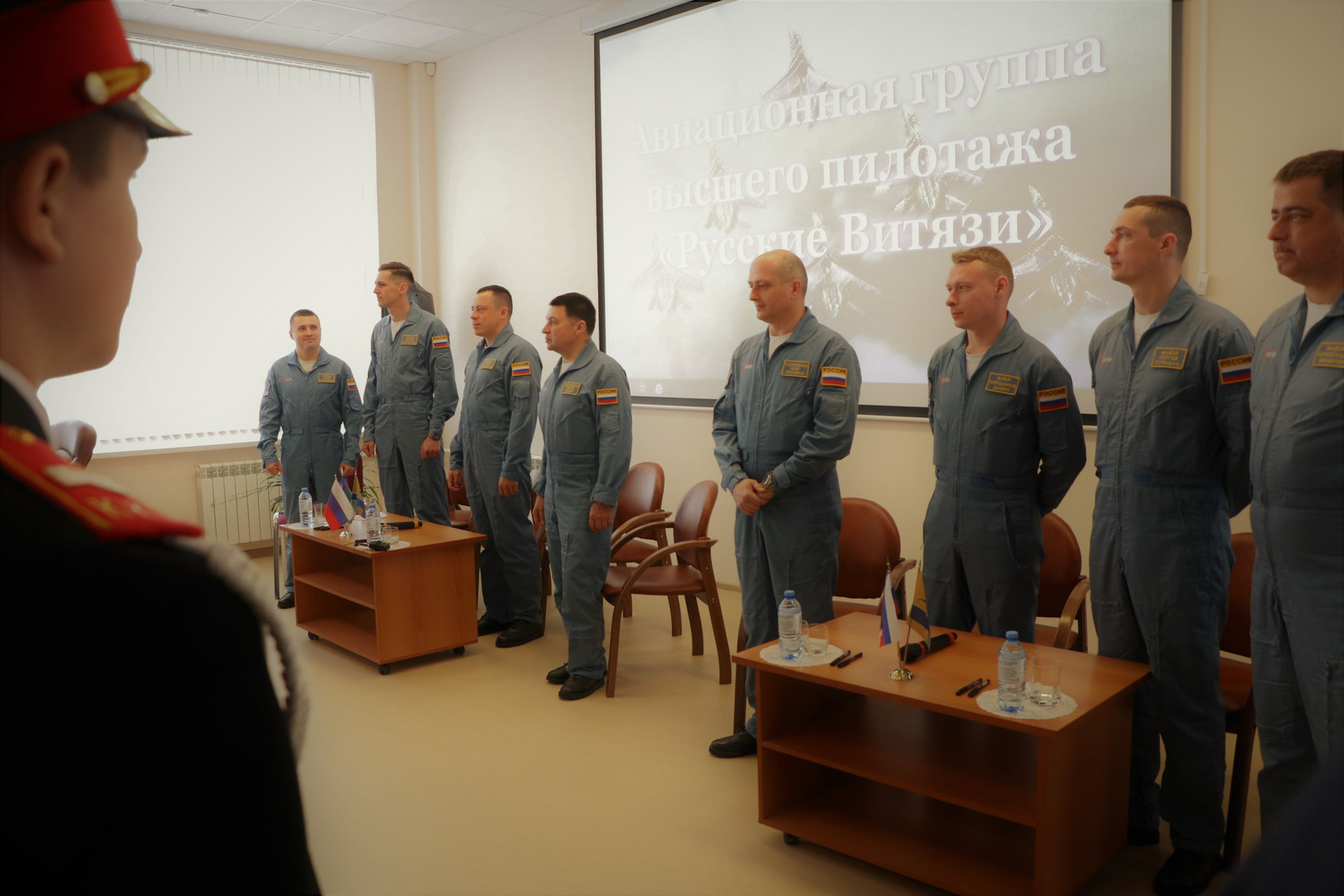 Члены пилотажной группы «Русские Витязи» встречаются с отличившимися в учебе, спорте и творчестве школьниками в рамках программы своего визита в Сургут. Сегодня команду лётчиков пригласили в лицей имени В. И. Хисматулина. Там их встретили около 70 учеников из разных школ города.
