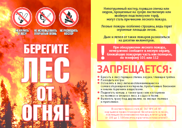- - запрет на разведение костров, поджигание сухой травы, проведение пожароопасных работ, топки печей, сжигания мусора в лесах, парках, на земельных участках, непосредственно примыкающих к лесным насаждениям и в противопожарных разрывах зданий и сооружений;