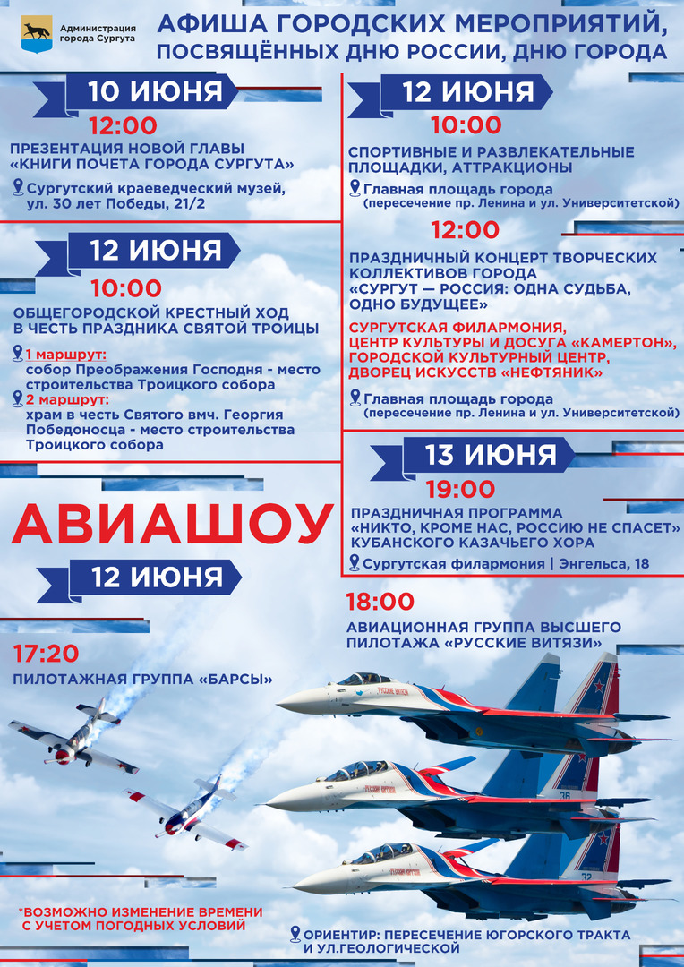 В День России и День рождения города Сургута пройдет череда праздничных мероприятий