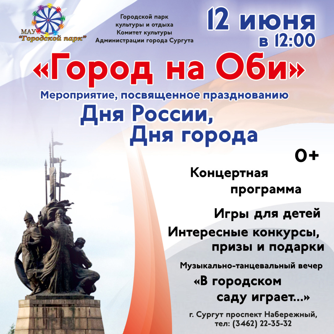 В 10.00 на проспекте Набережный начнется марафон «Дети рулят». А в 12.00 Городской парк культуры и отдыха устроит праздничную программу «Город на Оби».