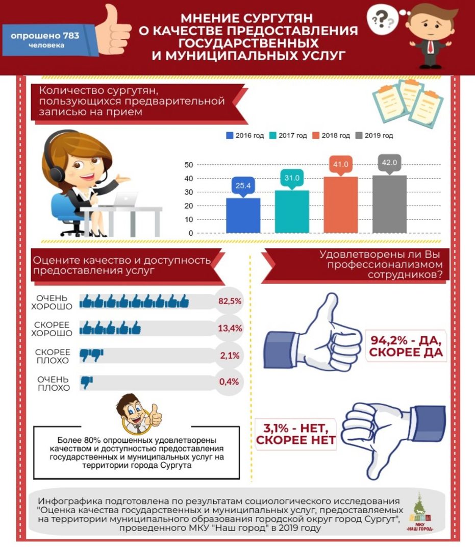 Муниципальное казенное учреждение «Наш город» провело социологическое исследование по определению уровня удовлетворенности сургутян качеством государственных и муниципальных услуг, предоставляемых на территории города Сургута.