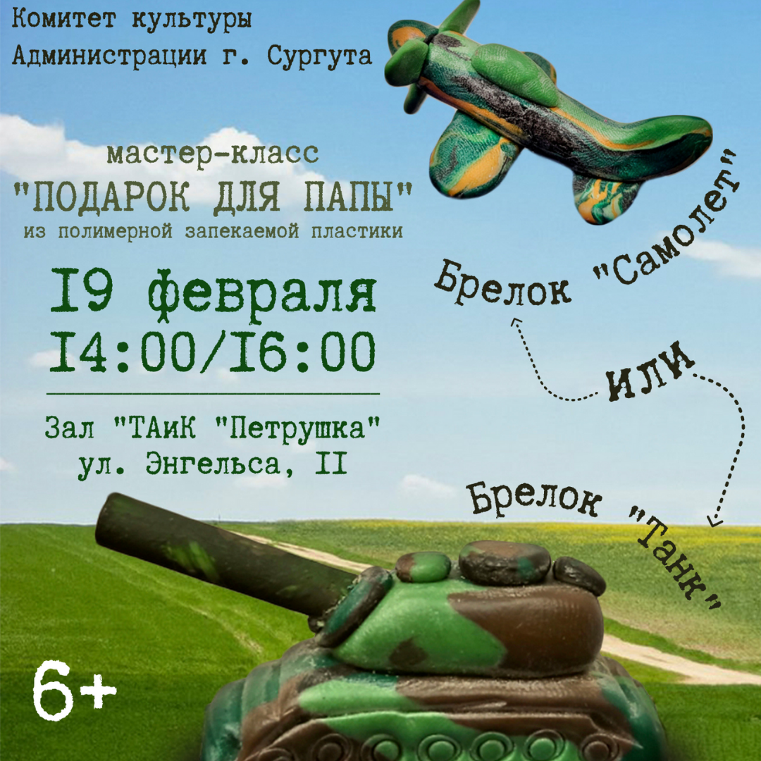 19 февраля в 14.00 и 16.00 «Театр актера и куклы «Петрушка» проведёт мастер-класс «Подарок для папы». Это прекрасная возможность сделать собственными руками красивые тематические брелоки, которые станут идеальным подарком в честь Дня защитника Отечества. Билеты также можно приобрести по Пушкинской карте.