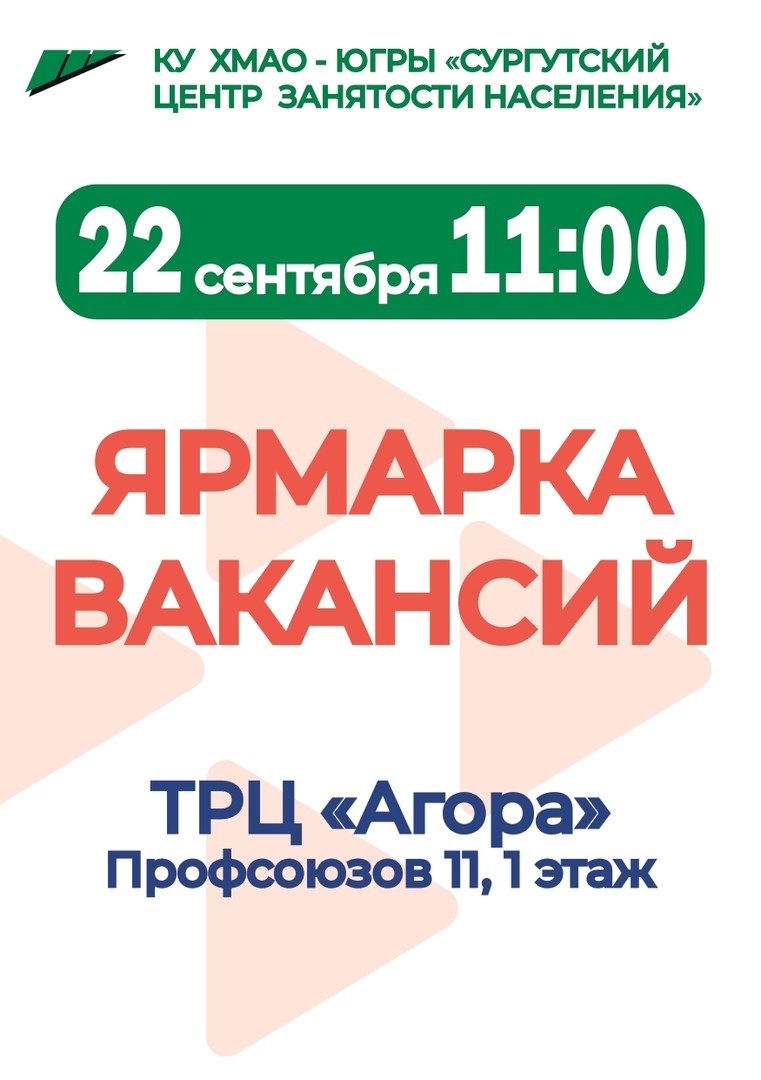 Ярмарка вакансий и учебных рабочих мест для всех категорий граждан состоится в Сургуте 22 сентября 2022 года.