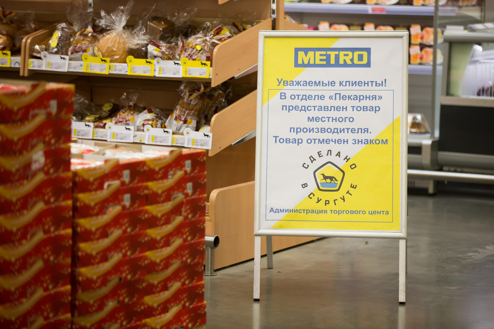 Цель достигнута – пищевую продукцию всех крупных местных производителей теперь можно купить во всех федеральных сетях на территории города. Там представлены товары сургутских компаний, отмеченные знаком качества «Сделано в Сургуте». В декабре на полках «МЕТРО» появилась и продукция Сургутского хлебозавода.