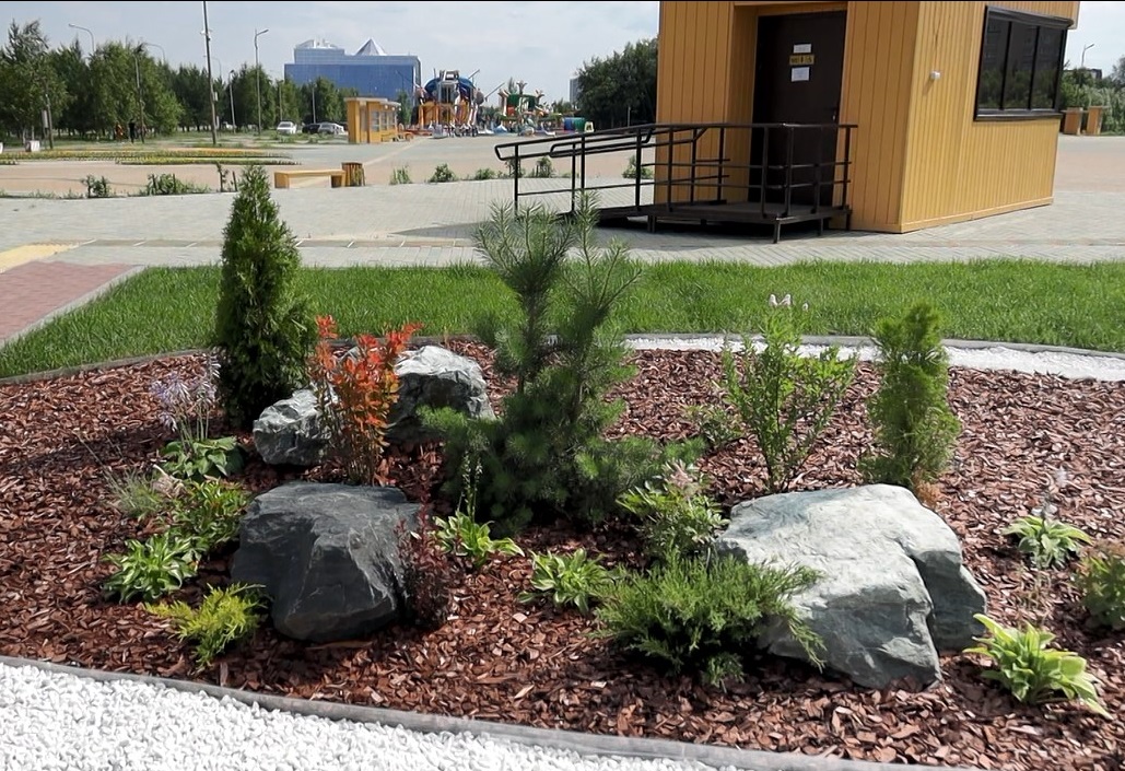 Тысячи петуний, виол, бархатцев и многих других традиционных растений украшают скверы, улицы и разделительные полосы автодорог. Элементы рокария, туи, барбариса, разных сортов можжевельника прижились на клумбах центральной площади и радуют великолепием красок горожан.