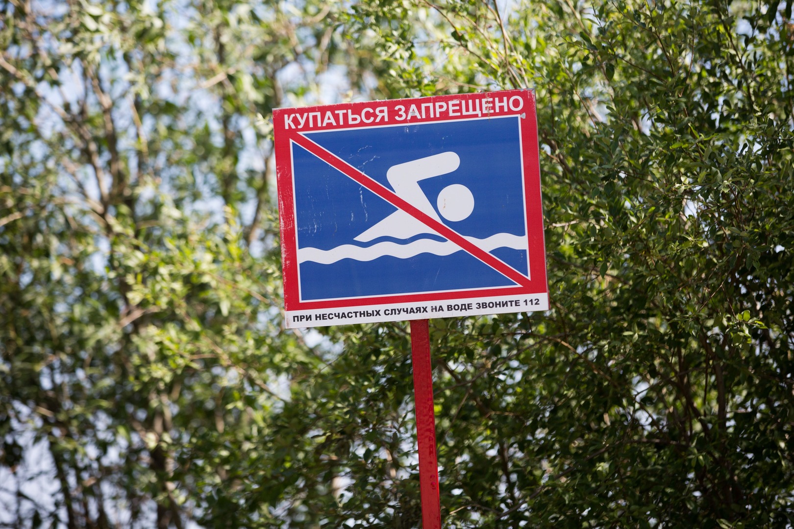 Вдоль берегов водных объектов, а также в парковых и лесных зонах, где располагаются водные объекты, установлены предупредительные знаки о запрете купания.