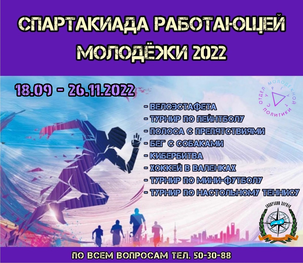 18 сентября 2022 года при поддержке отдела молодежной политики Администрации города Сургута пройдет первый этап спартакиады работающей молодежи «Велоэстафета» между молодёжью предприятий и организаций города.
