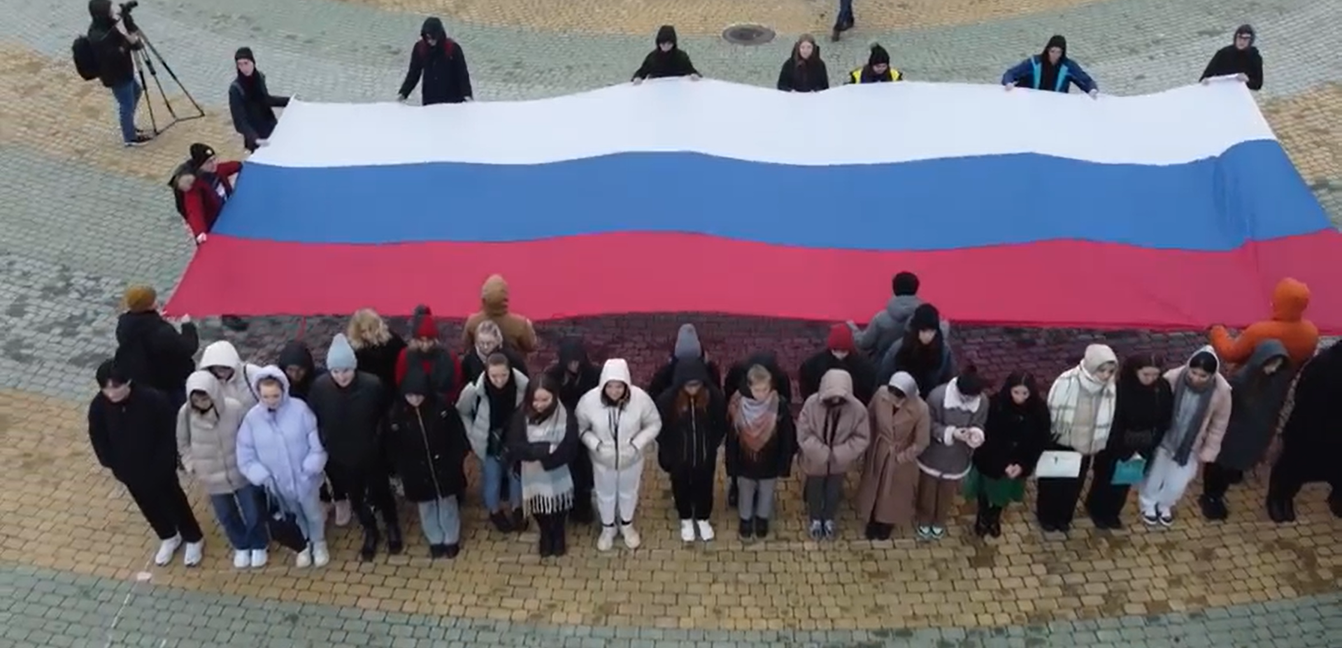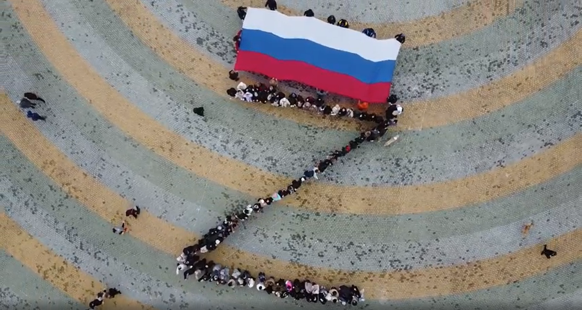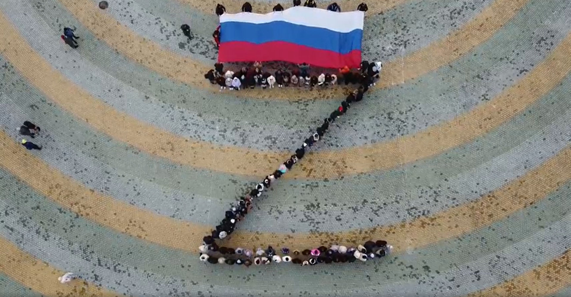 300 студентов выстроились в символ специальной военной операции – букву Z, расправив флаг Российской Федерации, выразив тем самым поддержку российским военнослужащим.