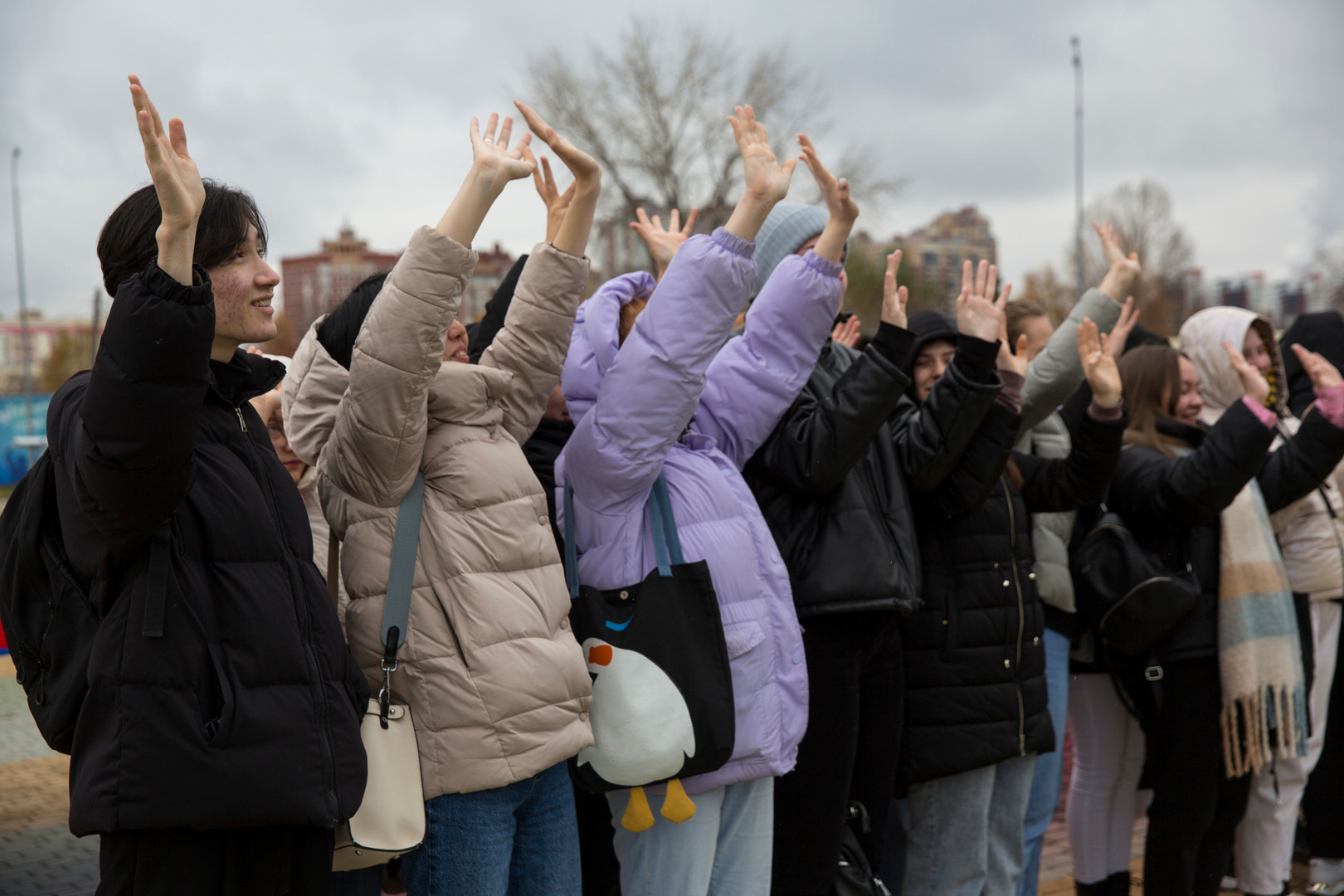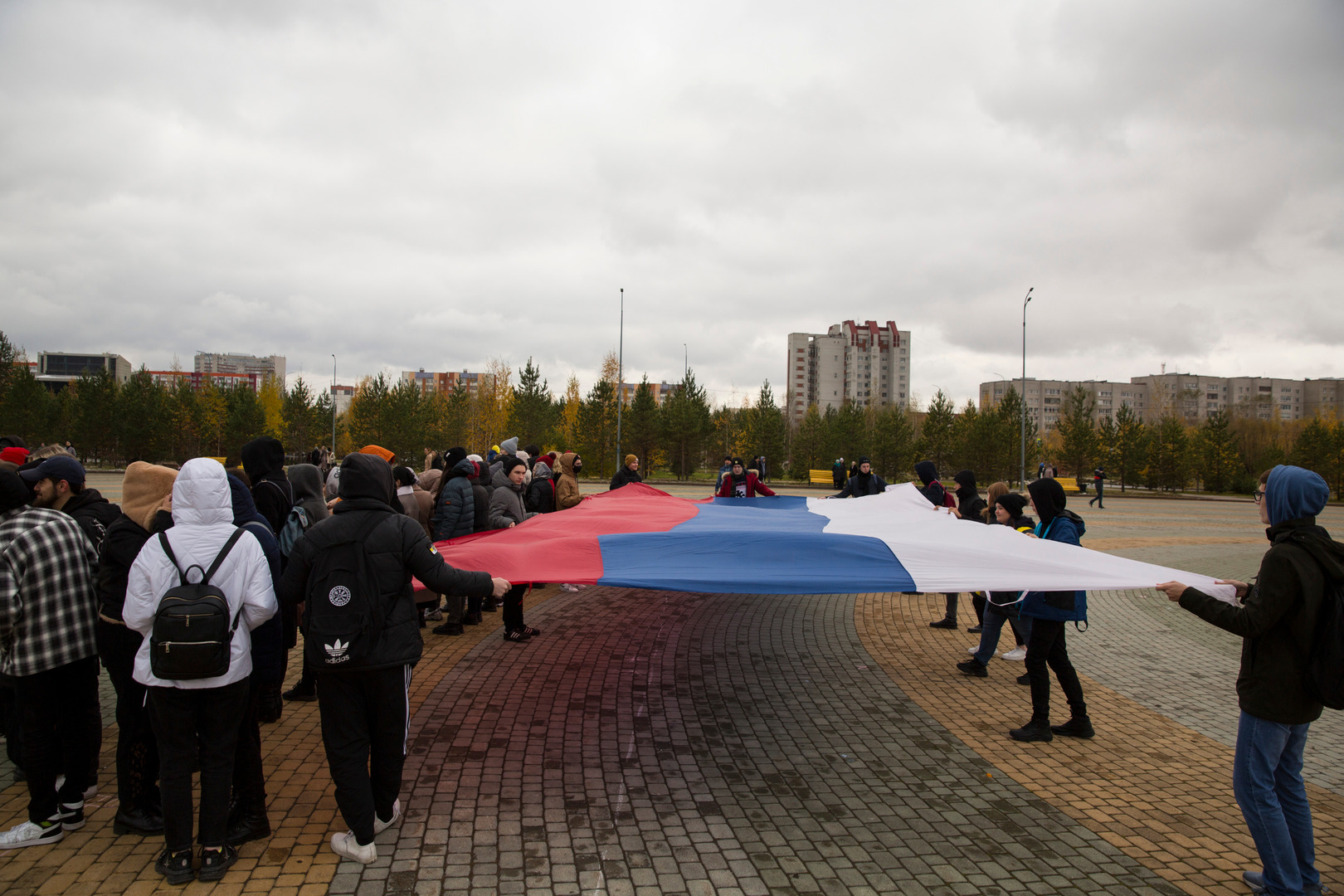 «Сегодня молодежь города Сургута в лице студенчества, молодежных общественных организаций, волонтерского движения, Молодежного парламента при Думе Югры, Молодежной палаты при Думе города Сургута собрались для того, чтобы провести флешмоб в поддержку тех, кто участвует в специальной военной операции на территории ЛНР, ДНР, Украины и защищает русское население от фашистских захватчиков. Также мы выражаем поддержку всем мобилизованным гражданам с территории Югры, отправляющимся сегодня на службу», - отметил заместитель председателя Молодежного парламента при Думе Югры Константин Воронов.