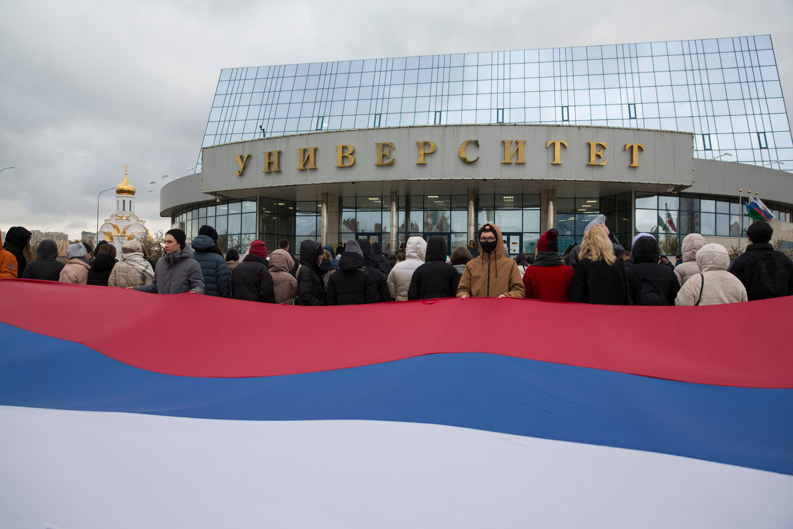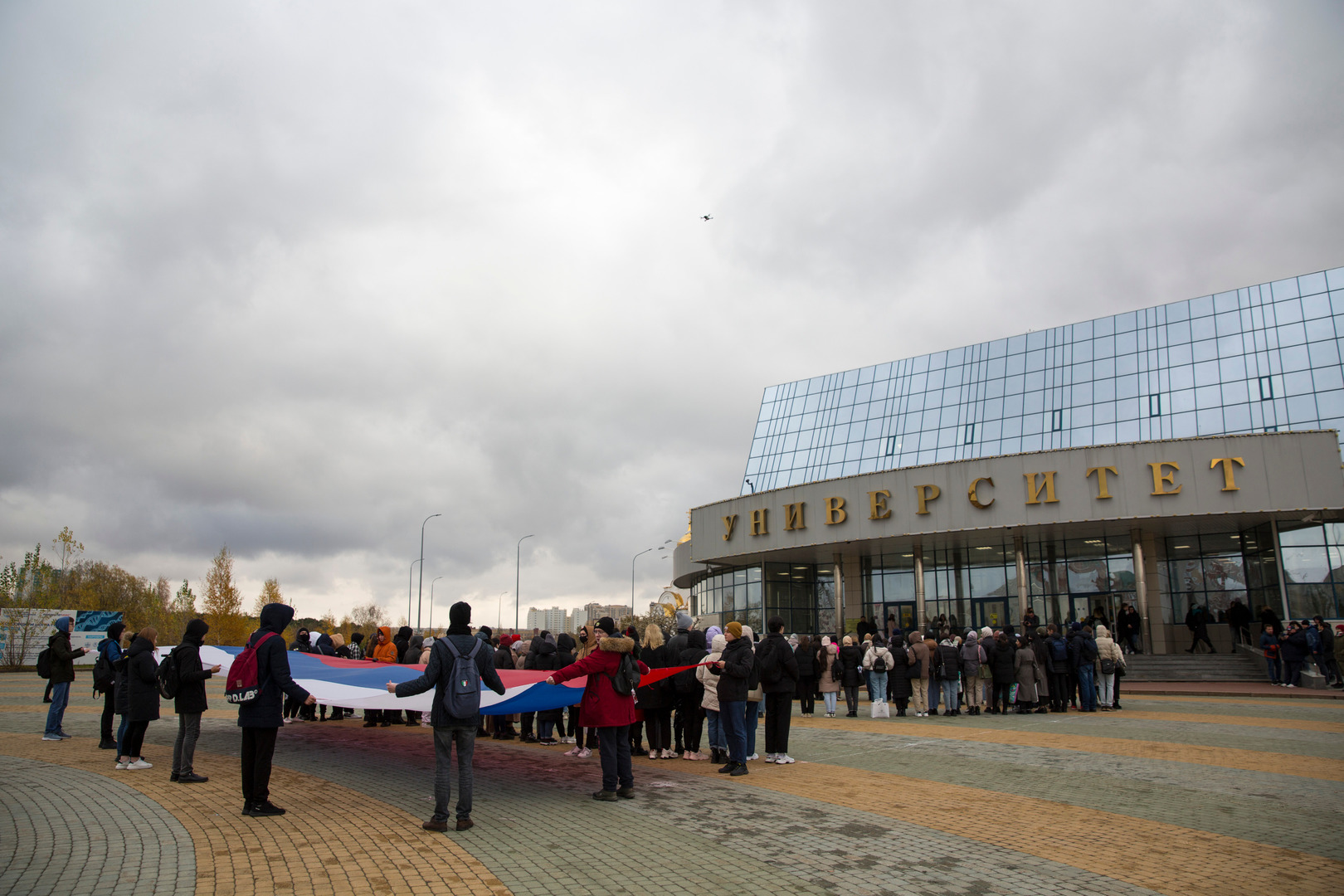В Сургуте состоялся патриотический флешмоб студентов в поддержку специальной военной операции и референдумов