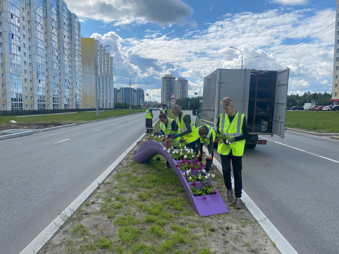 На улицах Сургута дополнительно установили 14 вазонов с цветочными композициями