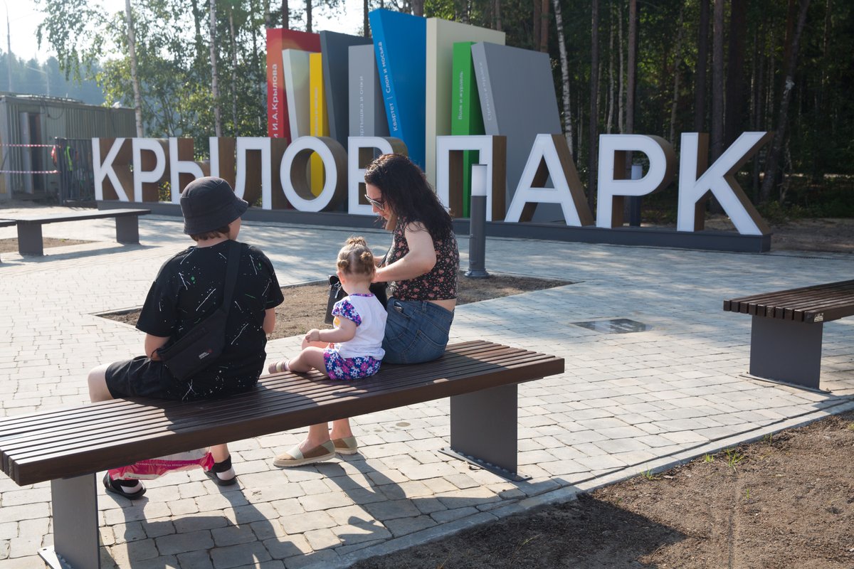 На территории «Крылов-парка» завершается установка скульптурных и арт-объектов. Губернатора Югры Наталью Комарову заинтересовала концепция общественного пространства.