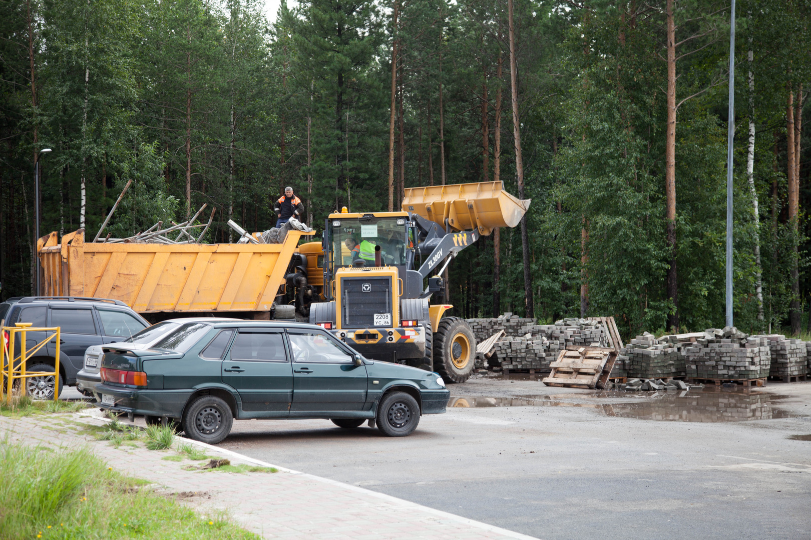 Во дворе между домами № 1 на Югорском тракте и № 9 на Тюменском тракте ремонт выполнен на треть. Сегодня идет асфальтирование зоны парковки площадью более тысяч квадратных метров. В скором времени здесь установят скамейки, урны, приступят к обустройству спортивной площадки и пешеходных дорожек.
