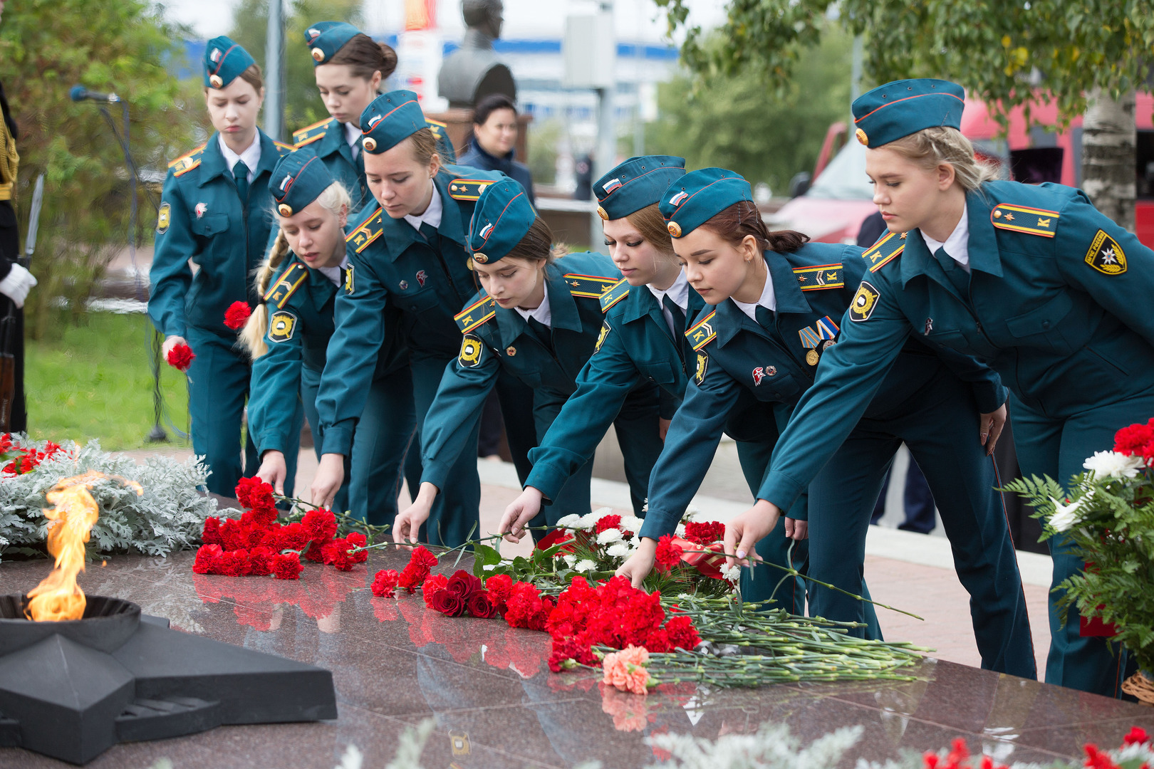 Школьники и педагоги, представители Росгвардии и ОМОНа, полиции, Администрации и Думы города, религиозных организаций почтили память жертв террористических актов минутой молчания, возложили цветы к Вечному огню.