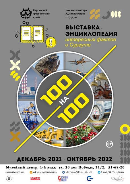 Выставка «100 на 100» предлагает новый формат музейного познания города. 100 фактов и 100 экспонатов расскажут о том, как развивался и строился Сургут, почему достигал производственных вершин, в настоящее время наш город занимает 3-е место в стране по объёмам промышленности, уступая Москве и Санкт-Петербургу. 100 исторических фактов проиллюстрируют предметы из фондов: археологии, фалеристики, естественно-научного, аудиовизуального, изобразительных источников, архивных документов, истории техники и сувенирной продукции. Кроме того, зрители смогут познакомиться с уникальными материалами аэрофотосъемки Сургута середины ХХ – первой четверти XXI веков. |