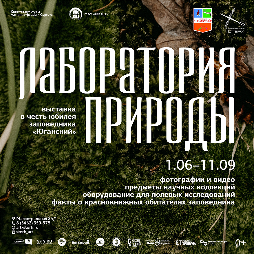 Выставка «Лаборатория природы» посвящается юбилею заповедника «Юганский». На выставке представлены фотографии, видео и предметы научных коллекций, а также оборудование, используемое сотрудниками заповедника в полевых условиях: тайге, болотах, водоёмах. Кроме того, экспозиция познакомит с интересными фактами удивительной жизни обитателей заповедника «Юганский», с растениями и животными, занесенными в Красную Книгу ХМАО-Югры |
