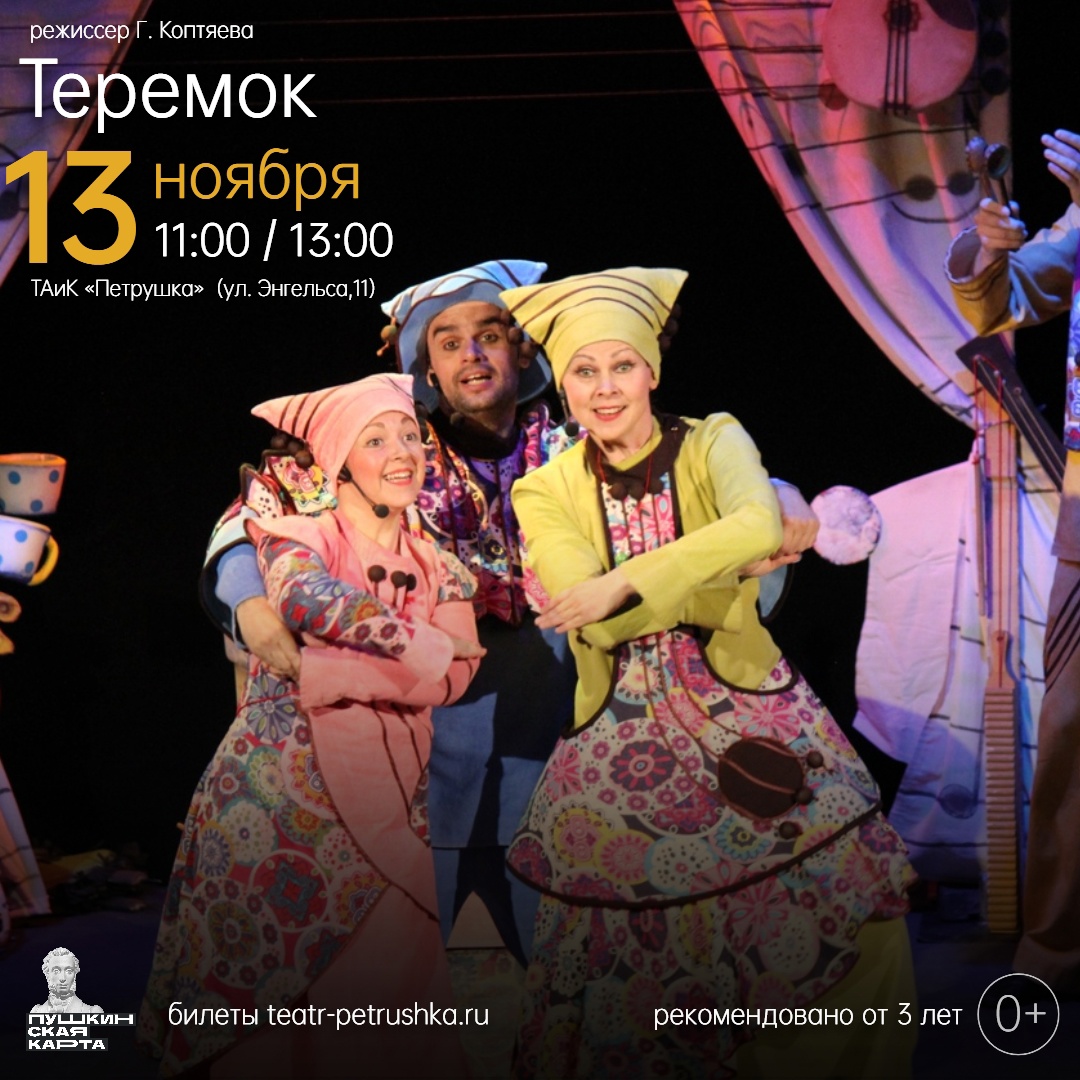 Четыре задорных сказочника-музыканта расскажут историю, как одному жить хорошо, а в коллективе лучше. Вместе и жить, и петь, и воевать веселее. Теремок - это волшебное место, где живёт гармония. Теремок всех принимает и никого не отвергает. Приходят в Теремок Звери разные, каждый со своим характером, но гармоничный мир Теремка научит и жить вместе, и работать, и отдыхать, и объединяясь, справляться с бедами. А на Руси и в мир, и в пир - с песней. «Тут на радостях все они вместе в пляс-то и пустились!» Билеты-онлайн teatr-petrushka.ru и по Пушкинской карте Продолжительность 50 минут. Рекомендовано для детей от 3 лет. |