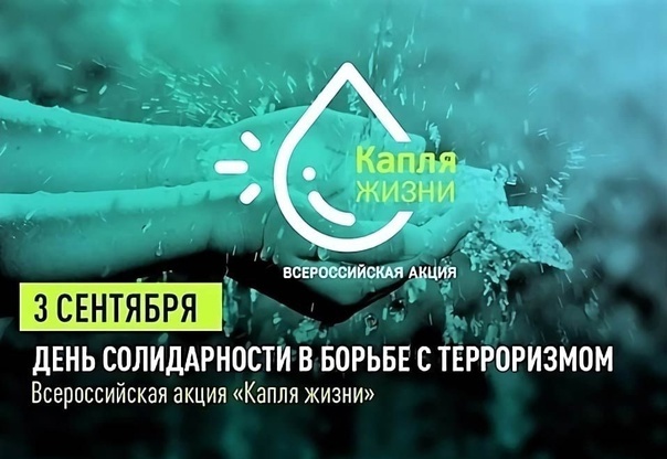 3 сентября состоится Всероссийская акция «Капля жизни», посвящённая Дню солидарности в борьбе с терроризмом.
