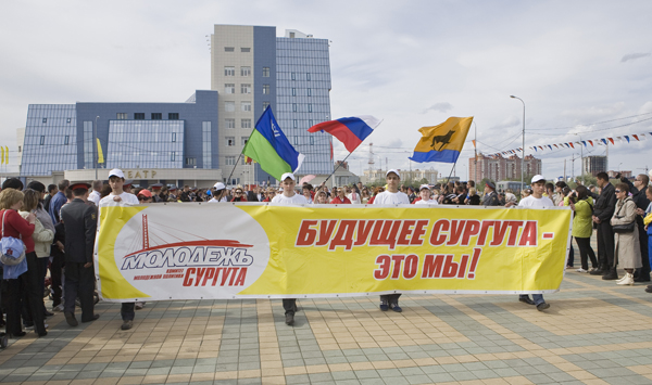 молодёжное шествие «Будущее Сургута – это мы!». На площади перед Сургутским
