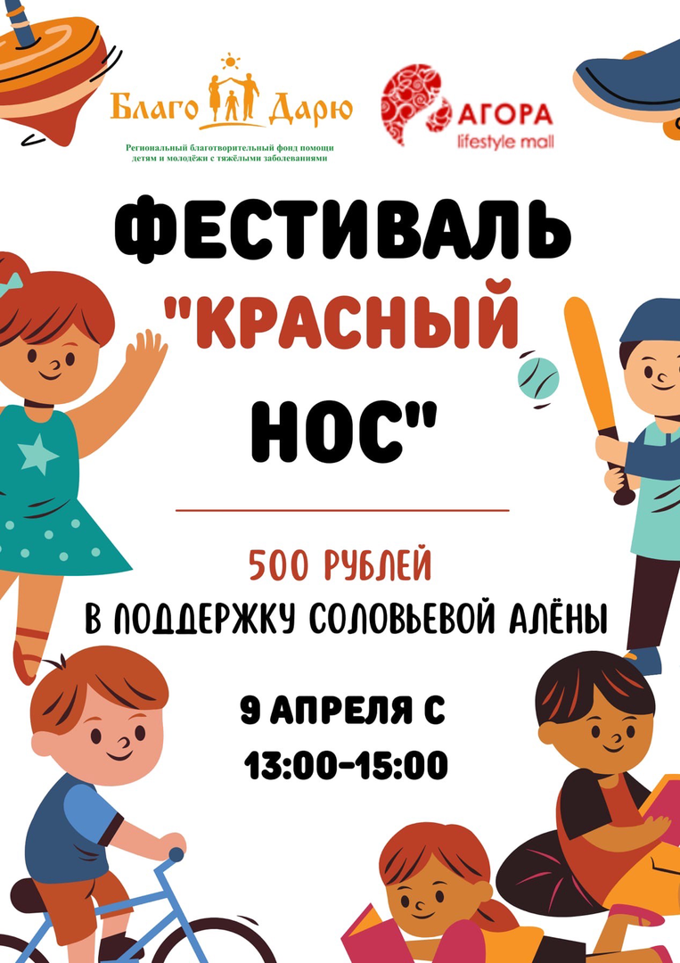 9 апреля 2022 года региональный благотворительный фонд помощи детям и молодёжи с тяжёлыми заболеваниями «Благо Дарю» проводит благотворительный фестиваль «Красный нос».