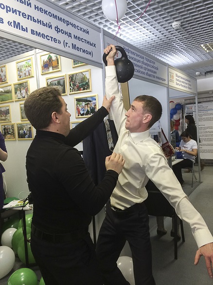 В центре зимних видов спорта, ставшим традиционной площадкой проведения Ярмарки, муниципальными образованиями округа были представлены экспозиции из 22 проектов социально ориентированных некоммерческих организаций Югры. Православный просветительский центр «Кирилл и Мефодий» города Сургута презентовал проект «Три ратных поля России», с которым познакомились не только участники, но и посетившая мероприятие Губернатор Югры Н.В. Комарова.