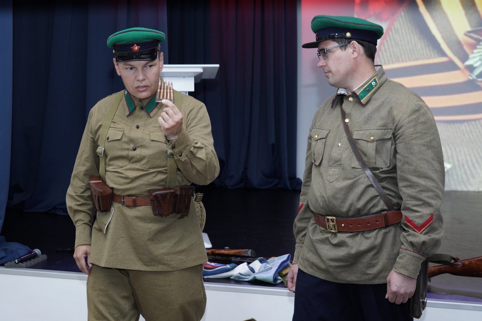 22 июня в историческом парке «Россия – Моя история» прошел Урок мужества. Юные слушатели смогли не только больше узнать о силе и отваге, но и вживую увидеть элементы экипировки и быта солдата, а также оружие. Спикерами в этот раз выступили руководитель общественной организации ветеранов-пограничников «Контрольно-следовая полоса» Михаил Севостьянов и руководитель городского военно-поискового клуба "Север" г. Сургут Андрей Попов.