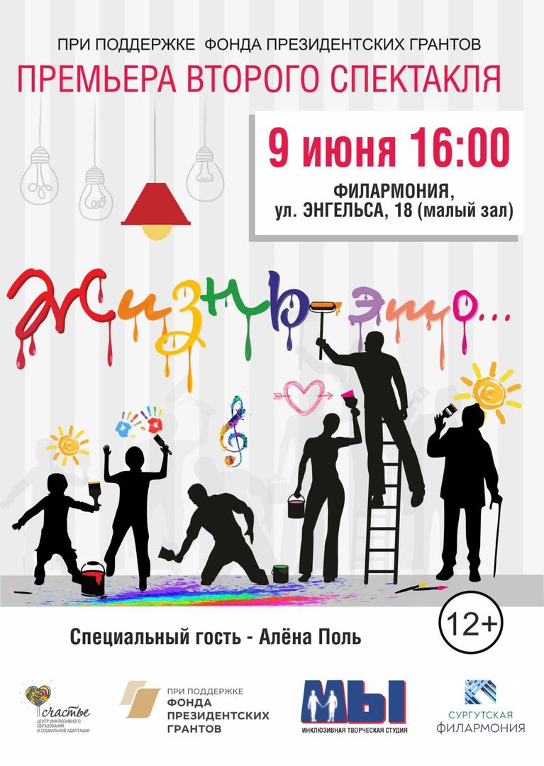 9 июня в 16:00 в малом зале Сургутской филармонии по адресу: ул. Энгельса, 18 состоится показ нового спектакля Инклюзивной творческой студии «МЫ» - «Жизнь - это...»!